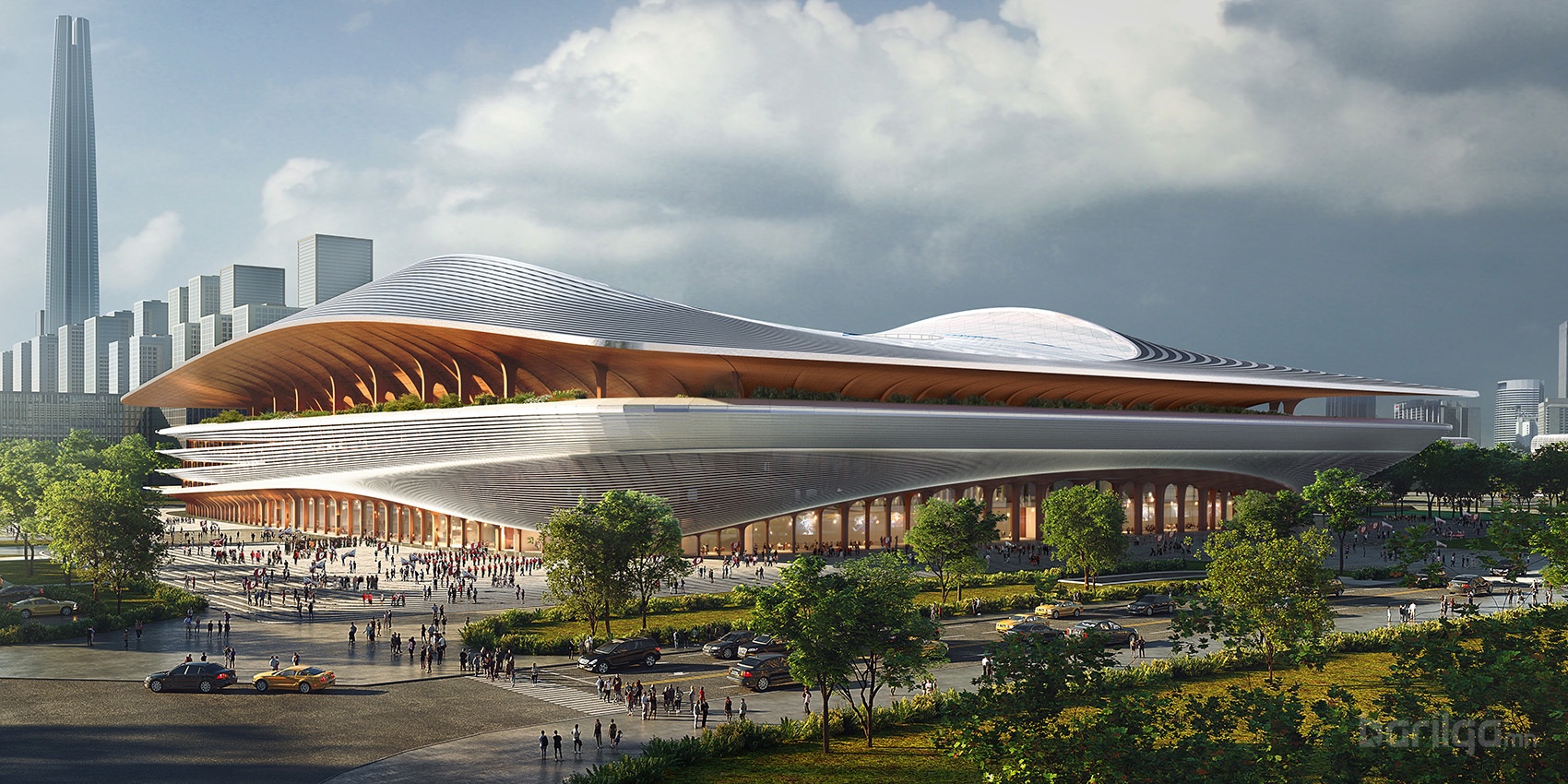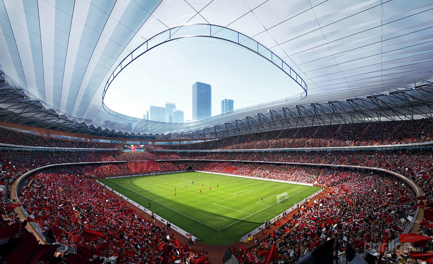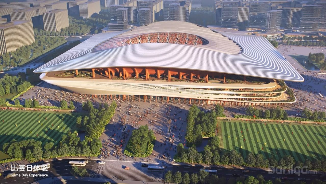 Фендун хотын бизнесийн төвийн тэгш өнцөгт сүлжээнд нэгтгэсэн цэнгэлдэх хүрээлэнгийн нээлттэй фасад нь хотыг өдрийн турш олон нийтийн газар, амралт, хоолны газруудаар зугаацуулахыг урьж байна. Урд зүг рүү харсан фасад нь Чин уулын цэцэрлэгт хүрээлэнгээр хүрээлэгдсэн энэ цогц байгууламжууд нь хөлбөмбөгийн тэмцээн, соёлын арга хэмжээ, тоглолтын үеэр цэнгэлдэх хүрээлэнд зочилсон үзэгчдэд үйлчилнэ.
