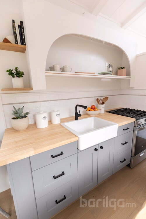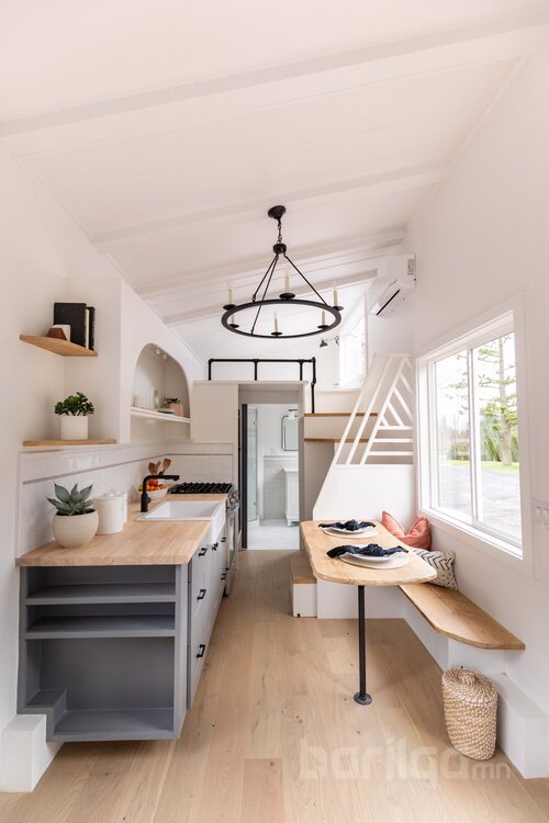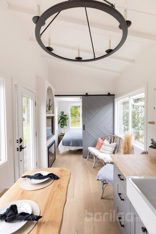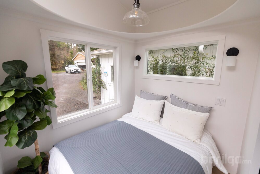 Та бүхэнд 30 мкв багтаамжтай чиргүүлэн дээрх сууцыг танилцуулж байна. Энэхүү сууц нь хоёр давхар ба дээд давхартаа унтлагын өрөөтэй. Харин доод давхартаа гал тогоо болон ажлын өрөөтэй, шатны ард талд нь цахилгаан хэрэгслүүд болон угаалгын өрөө байрлана. Дотоод интерьерийн хувьд "минималист" хэв маягийн дизайнтай ба 2021 онд тренд болж буй байгалийн материал буюу модон элементүүдийг оруулж өгсөн байна. Энэ нь сууцын доторх цагаан өнгөтэй хосолсноор илүү орчин үеийн, тав тухтай орчин бүрдүүлэхэд нөлөөлж байгаа юм.