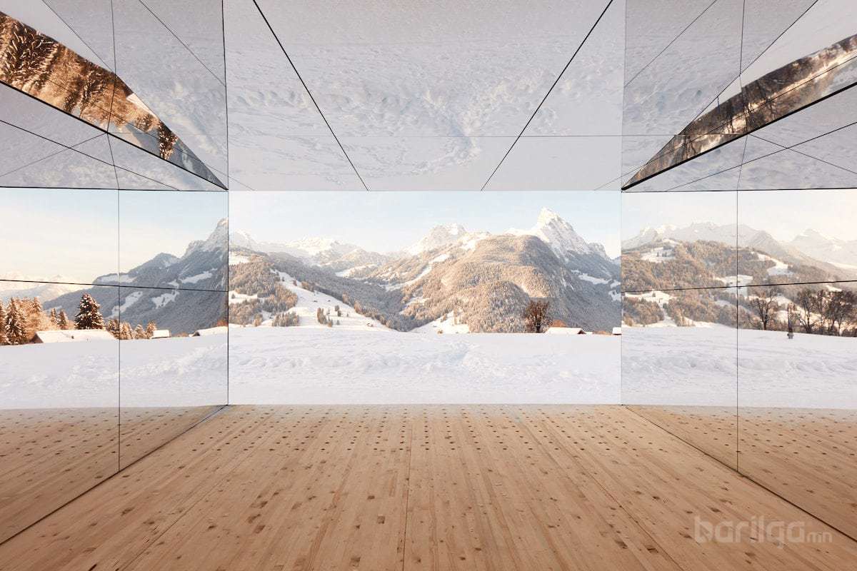 Швейцарийн Альпийн нуруунд байрлах "Мираж Гстаад" хэмээх энэхүү толин байшин нь АНУ - ын архитектор Даг Айткений бүтээл юм. Швейцарийн Гстаад дахь үзэсгэлэнт нугад баригдсан эл байшин битүү толиор бүрхэгдсэн бөгөөд жилийн дөрвөн улиралд байгалийн үзэсгэлэнт төрхийг ойлгон харуулж, Альпийн нурууны үзэсгэлэнт төрхийг улам тодруулдаг аж.