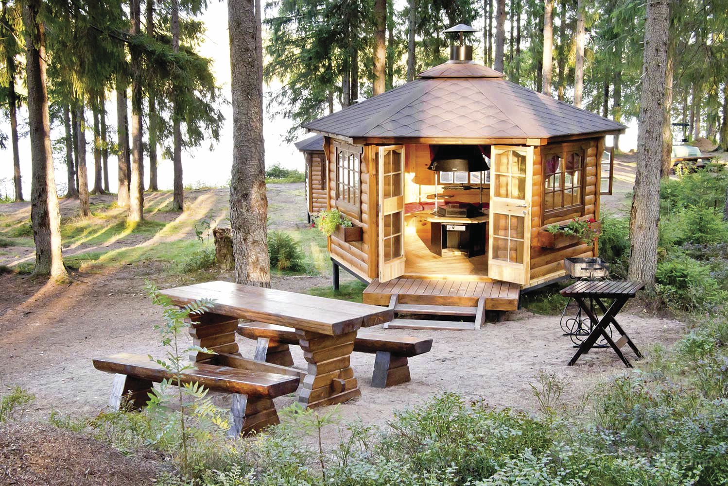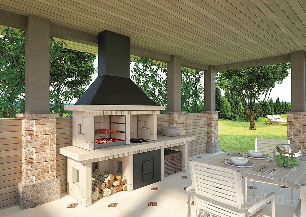 3. Агааржуулалттай битүү орчин: Зуны гал тогоог дотор, тусдаа жижиг байшинд ч юм уу, амбаар, цонхтой битүү сүүдрэвчинд байрлуулснаар улирлын хамаарал, цаг уурын бэрхшээлийг хайхралгүйгээр тохь тухтай амарч, хооллож цагийг зугаатай өнгөрөөх болох юм. Үүний тулд агааржуулалттай битүү орчинд яндан бүхий зуух, мах шарагчийг тоноглосон байх бөгөөд энэ нь зочдын хажууд шууд хоол хийх боломжийг олгодог. Зуухны дизайныг урьдчилан бодож үзэх хэрэгтэй бөгөөд бусад хэсэгт саад болохооргүй, галын аюулгүй байдлыг бүрэн хангасан байх шаардлагатай. Сонирхолтой сонголт бол Финлянд гал тогоо бөгөөд энэ нь байшингийн яг төвд нь гал голомтыг байрлуулах боломжийг олгосноор гоо зүйн үзэмж, орчин үеийн дизайнаар ялгагдана.Энэ санаа нь мах шарах, хоол хийх, ширээнд тохьтой суух, тэр ч байтугай буйдан дээр хэвтэх боломжийг олгодог. Энэ загвар нь нилээд уян хатан бөгөөд нэг дор хэдэн хүн амарч, хооллохоос шалтгаалан сонголтоо хийж болно.