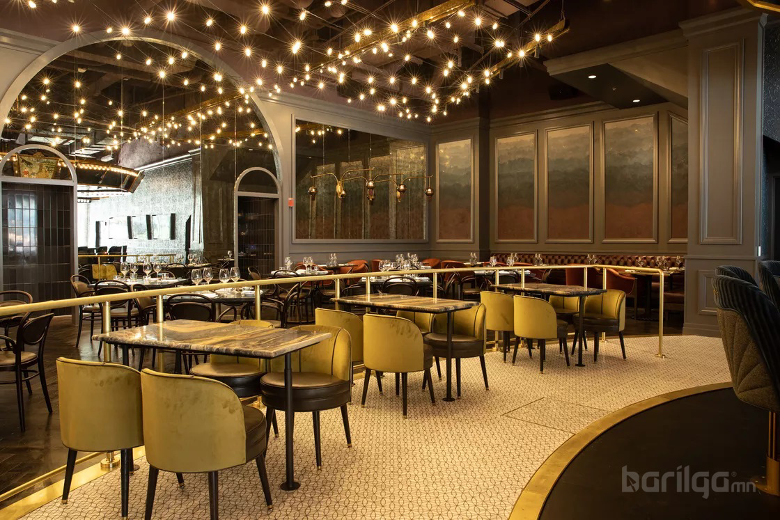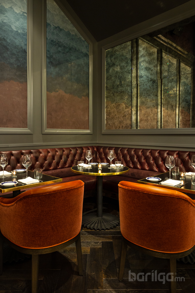 Материалын сонголт: Материал дээр их ач холбогдож өгсөн бөгөөд тавилгууд нь зөвхөн энэ ресторанд зориулж хийгдсэнээрээ ялгардаг.