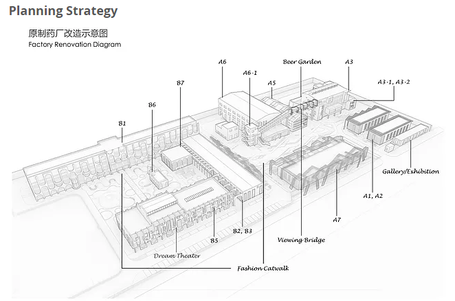 Одоо байгаа аж үйлдвэрийн дэд бүтцийн давуу талыг ашиглан газар дээр нь үлдсэн үлдэгдэл олдворуудыг ландшафтад ашиглаж, дахин боловсруулах, дахин ашиглах замаар цогцолборыг бий болгосон. Одоо байгаа барилгуудын дотоод засварын ажилд COVID гэх мэт цар тахлын түүхэн нөлөөг харгалзан үзсэн бөгөөд нэгж тус бүрийн интерьерийг хувийн орон зайг хөндөхгүй байхаар төлөвлөсөн байв. Нийгмийн холын эрин үед мульти үйл ажиллагаанд зориулагдсан өргөн талбай бүхий хашаанууд, аливаа дотоод хамтын орон зайг арилгах нь оффис, студиуд зэрэг нь вирусын тархалтыг бууруулахад хэрэг болно. Оффис, студи дотор жижиг интерьер бүлгүүд үүсч болох боловч HVAC системүүд нь зөвхөн эдгээр орон зайд хамаарч, тэдгээрт үүсэх бохирдлоос урьдчилан сэргийлэхэд онцгой анхаарч ажилласан.