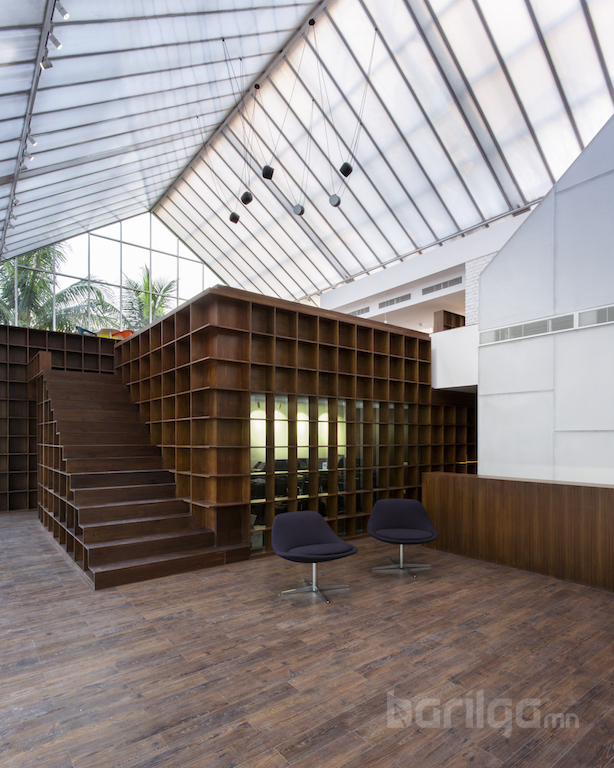 Оффис архитектур талаасаа олон янзын зориулалттай, хүний нүдэнд тусахуйц байхаар төлөвлөгджээ. Өөрөөр хэлбэл дотоод орон зайн хувьд уулзалт, хурал зөвлөгөөн гэх мэтээр өрөөнүүд нь өөр өөрийн хэв маягтай байхаар тохижуулжээ. Оффисын барилга нэгэн хэвийн, албаны маягтай бус хайрцагнаас гарч сэтгэсэнд уг барилгын давуу тал оршино. Мөн компанийн ажилчид заавал 9:00-5:00 цаг хүртэл ажиллах шаардлагагүй, үүнээс олон цагаар ч ажиллаж болохоор ажээ.