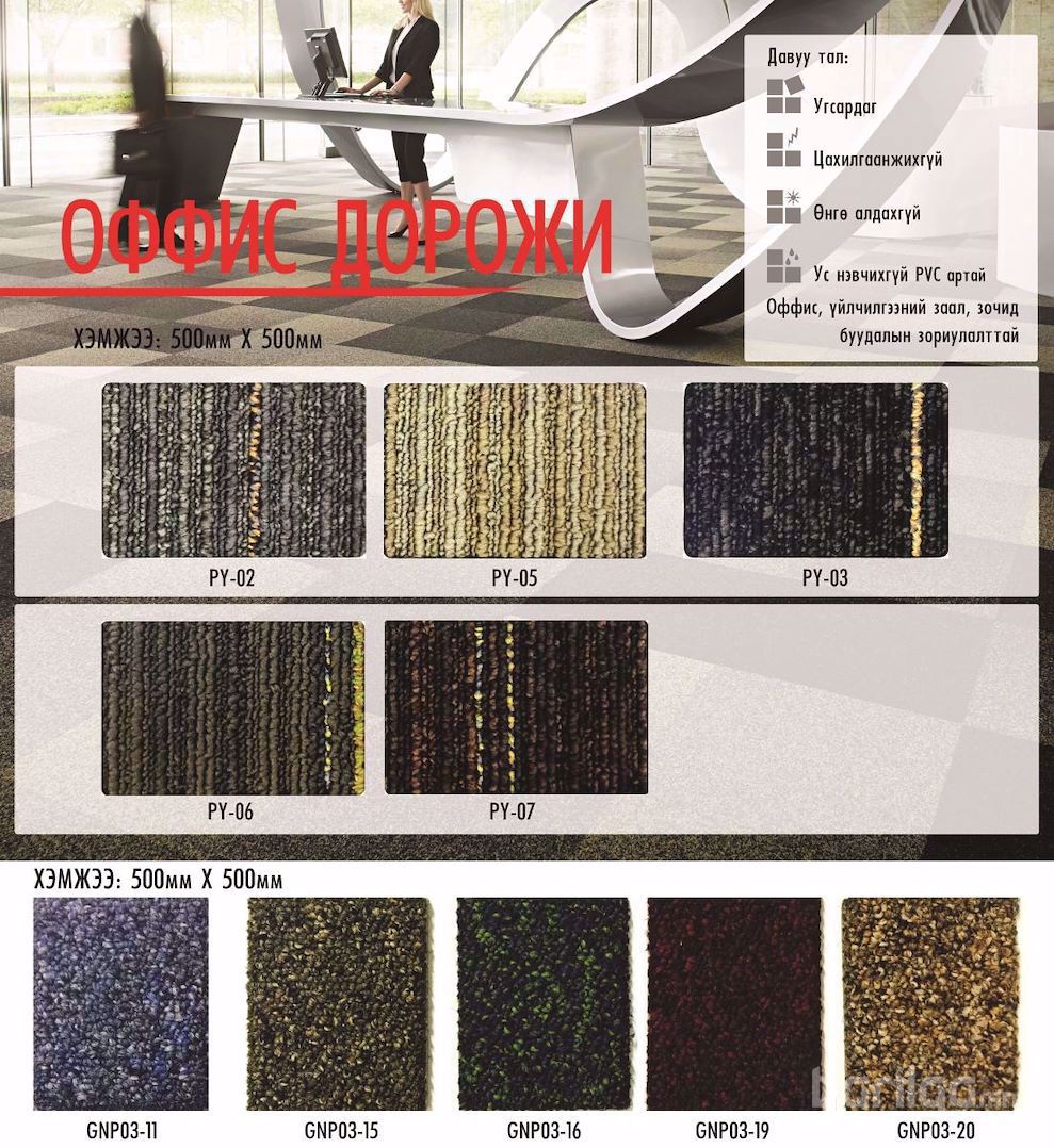 Манай компанийн хувьд бүх төрлийн дорожийг оруулж ирдэг. Тухайлбал оффисын дорожи гэж ярьдаг угсардаг дорожийг хүмүүс ихэвчлэн гэртээ авч хэрэглэдэг. Яагаад гэхээр үс нь ширүүн. Ширүүн үстэй байгаа шалтгаан нь оффист хөлний ачаалал даах чадвартай, утас нь бүдүүн, гогцоо үүсдэггүй, машинаар угаахад ачаалал даана, резинен артай гэдэг шалтгаанаар оффисын зориулалттай угсардаг. Монголд энэ ширүүн үстэй дорожиг гэртээ хэрэглээд байдаг, уг нь бол зориулалт нь биш. Жишээ нь гэрт угсардаг дорожи суурилуулвал жаахан хүүхдийн нүүр, ам халцрах ч асуудал гарч болно.