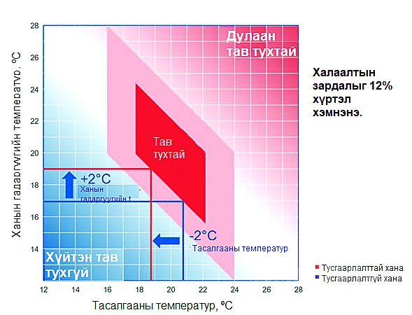 Тэгвэл дулаан тусгаарлах үе хийснээр дулааны гүүр арилж агаарын чийглэг буцаж хүйтэн ханан дээр конденсацид орж буух үйл явц үүсэхгүй тул хөгц, мөөгөнцөр үүсэхээс урьдчилан сэргийлдэг байна. Мөн чийг ихтэй үед өөртөө шингээж аваад агаар хуурай болох үед буцаан тасалгаанд өгсөнөөр өрөөний бичил уур амьсгал болон хүний эрүүл мэндэд эерэгээр нөлөөлнө.