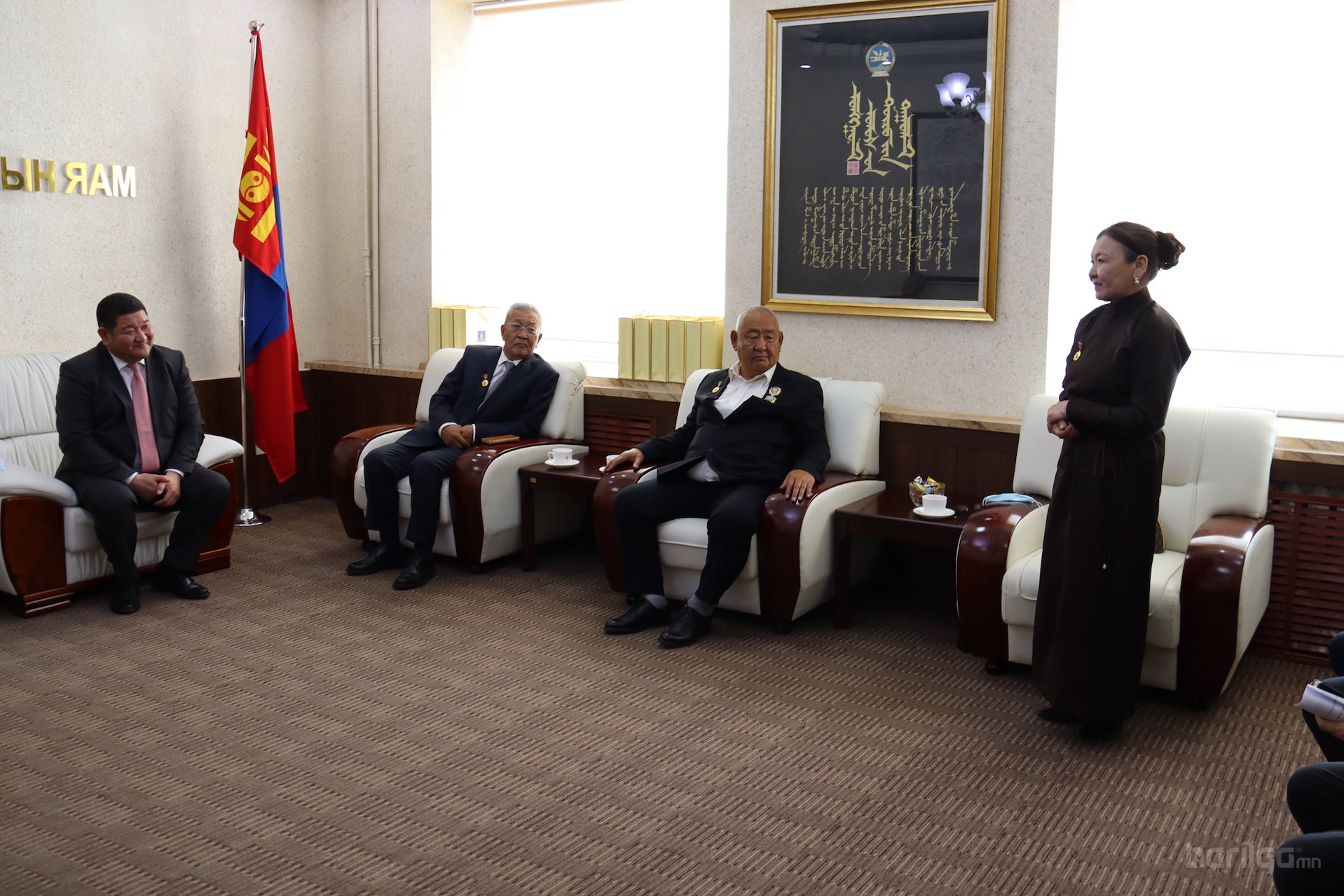 Барилга, хот байгуулалтын сайд Б.Мөнхбаатар, Дэд сайд Э.Золбоо нар барилгын салбарт хийсэн бүтээснээ үнэлүүлсэн гавьяатуудаа хүлээн авч /2021.06.02/ хүндэтгэл үзүүллээ.