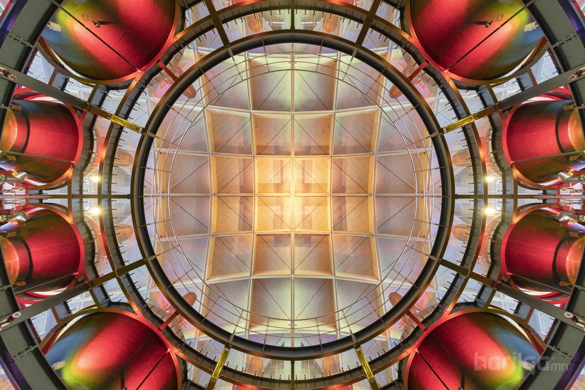 Дээвэр нь дээврийн гэрэлтүүлэг ба дамжлагын агааржуулалтын нүхийг баглаж, цагираг шиг гало хэлбэрээр байрлуулсан бөгөөд төлөвлөгөөний дагуу тойргийн дамжлагад шууд холбогддог. Агааржуулалтын самбарууд нь хоёр үе шаттай бөгөөд дамжлагын танхимын орчноос гарах халуун агаарыг доод төвшинд гадагшлуулах боломжийг олгоно.