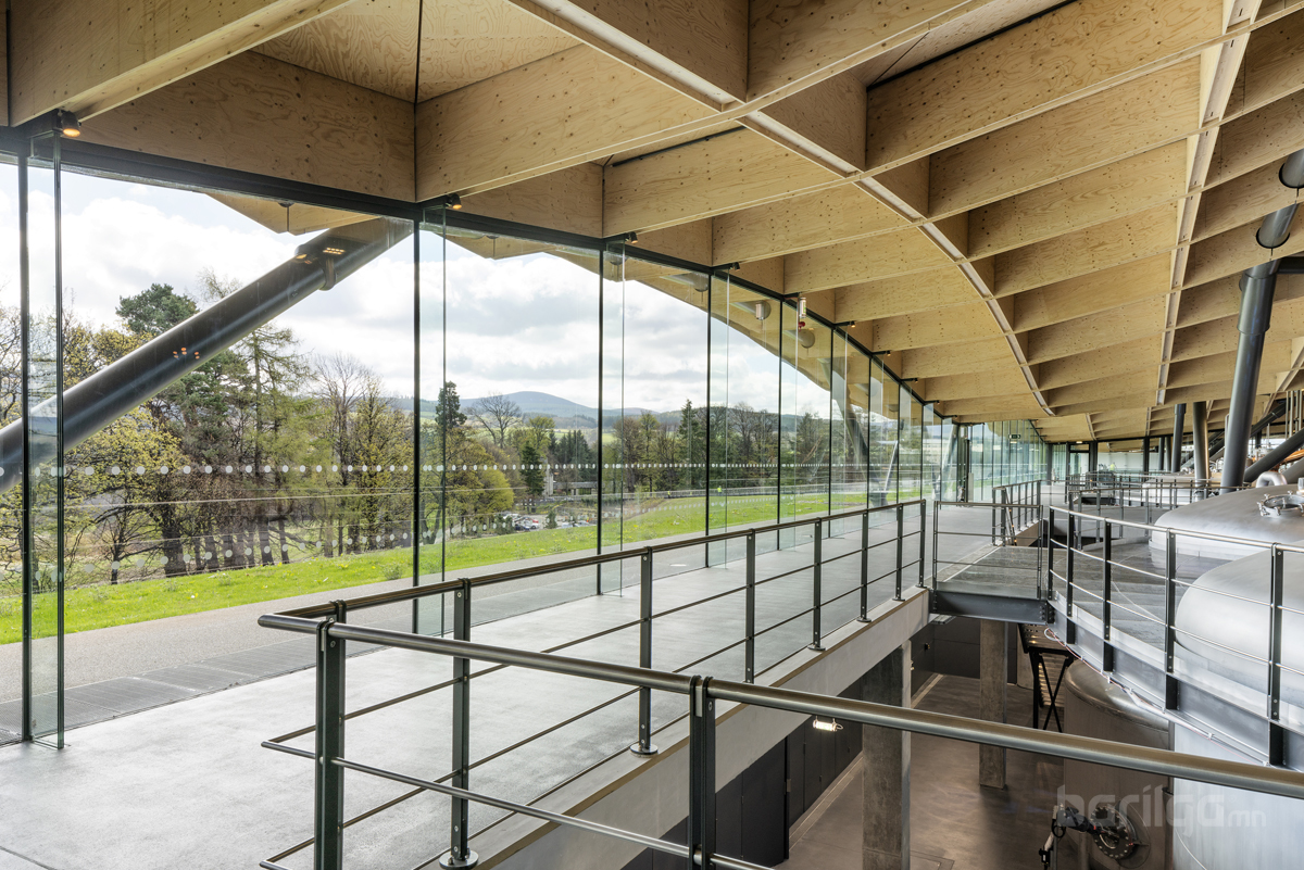 2018 онд эцсийн байдлаар баригдаж дууссан барилга нь модулар цогцолбор бөгөөд үйлдвэрлэлийн гарц нэмэгдэх үед өргөтгөлийг хялбархан хийх боломжийг олгож байгаа юм. Төлөвлөлтийн хувьд үйлдвэрлэлийн цуврал дамжлагыг шугаман хэлбэрээр байрлуулж, нээлттэй төлөвлөлт бүхий зохион байгуулалттайгаар үйл явцын бүх үе шатыг нэг дор харуулна. Эдгээр дамжлагууд нь барилгын дээгүүр модон татангаар үүссэн зөөлөн долгионтой дээвэр хэлбэрээр тусгалаа олдог. Макаллан тариалангийн талбайгаас өвсөөр хучигдсан толгодууд уруудаж, доошоо бууж байгаа нь алсаас ирж буй зочдод байгууламж ойртож буйг сануулдаг байна. Талбайн байгалийн налуу шугамыг байрлуулсан энэхүү зураг төсөл нь эртний Шотландын газар шорооны ажлаас санаа аван байгуулжээ.