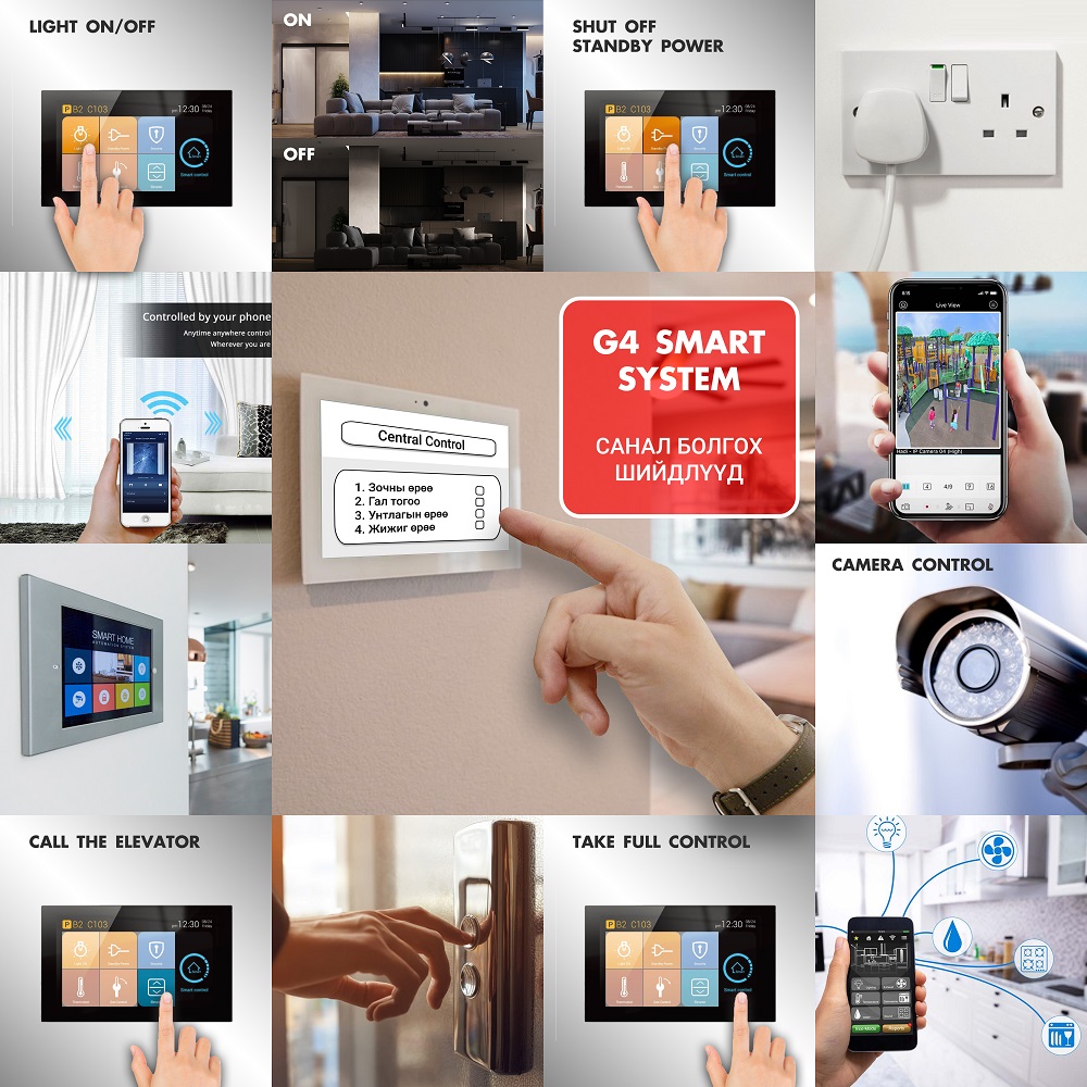 Sky Smart Apartment төслийн Ухаалаг удирдлагын системийг АНУ-ын Смарт Индастри Группийн G4 /Generation-4/ брэндийг Монгол улсад 2014 оноос нэвтрүүлэн ажиллаж байгаа “Гэгээн Саруул Инженеринг” ХХК гүйцэтгэж байгаа бөгөөд өмнө хэрэгжүүлсэн 40 гаруй төслийнхөө шалгарсан нөхцөлүүдийг ашиглаж байгаагаараа онцлог юм.