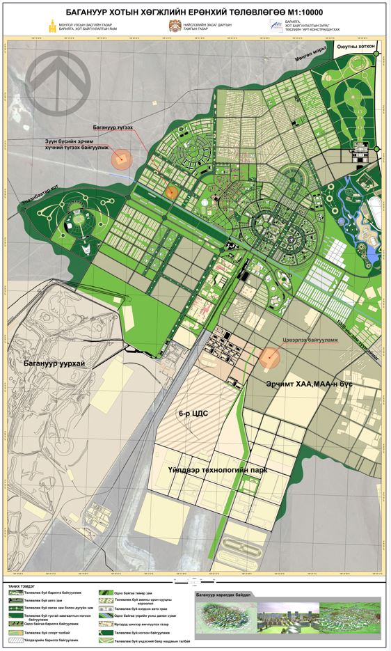 Тус дагуул хотын ерөнхий төлөвлөгөөг Засгийн газрын 2017 оны 347 дугаар тогтоолоор баталсан бөгөөд 2030 оны түвшинд 15,000 өрхийн 60 мянган хүн амтай байхаар тооцож төлөвлөлтийн хугацаанд