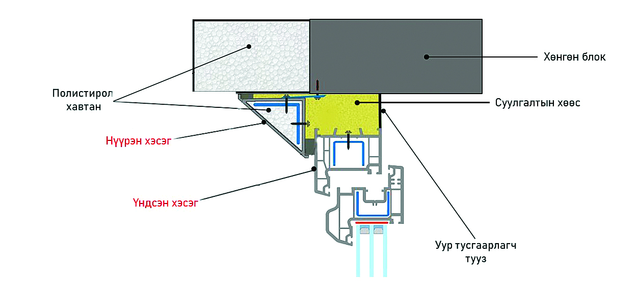 Үндсэн хэсэг: Энэ нь тухайн барилгад угсрагдаж суугдах цонх байх юм.