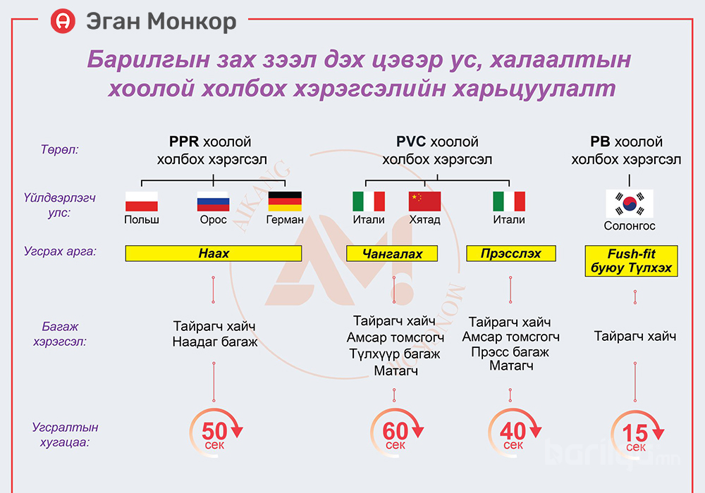 "Эган Монкор" ХХК нь 2014 онд байгуулагдсан бөгөөд цэвэр ус, шалны усан халаалтын РВ хоолой, холбох хэрэгслийг барилгын зах зээлд нийлүүлэн угсралтын үйл ажиллагааг явуулж байна. Бид барилга, сантехник угсралтын салбарт цоо шинэ технологийн дэвшлийг харуулсан “РUSH–FIT“ систем буюу түлхэх аргаар угсардаг физик, хими, механик үзүүлэлтээрээ хамгийн сайн “Рolybuteleny” түүхий эдээр хийгдсэн хоолой холбох хэрэгслийг нэвтрүүлсэн. Энэ хугацаанд 30 гаруй барилгад РВ хоолой холбох хэрэгслийг нийлүүлсэн байна.
