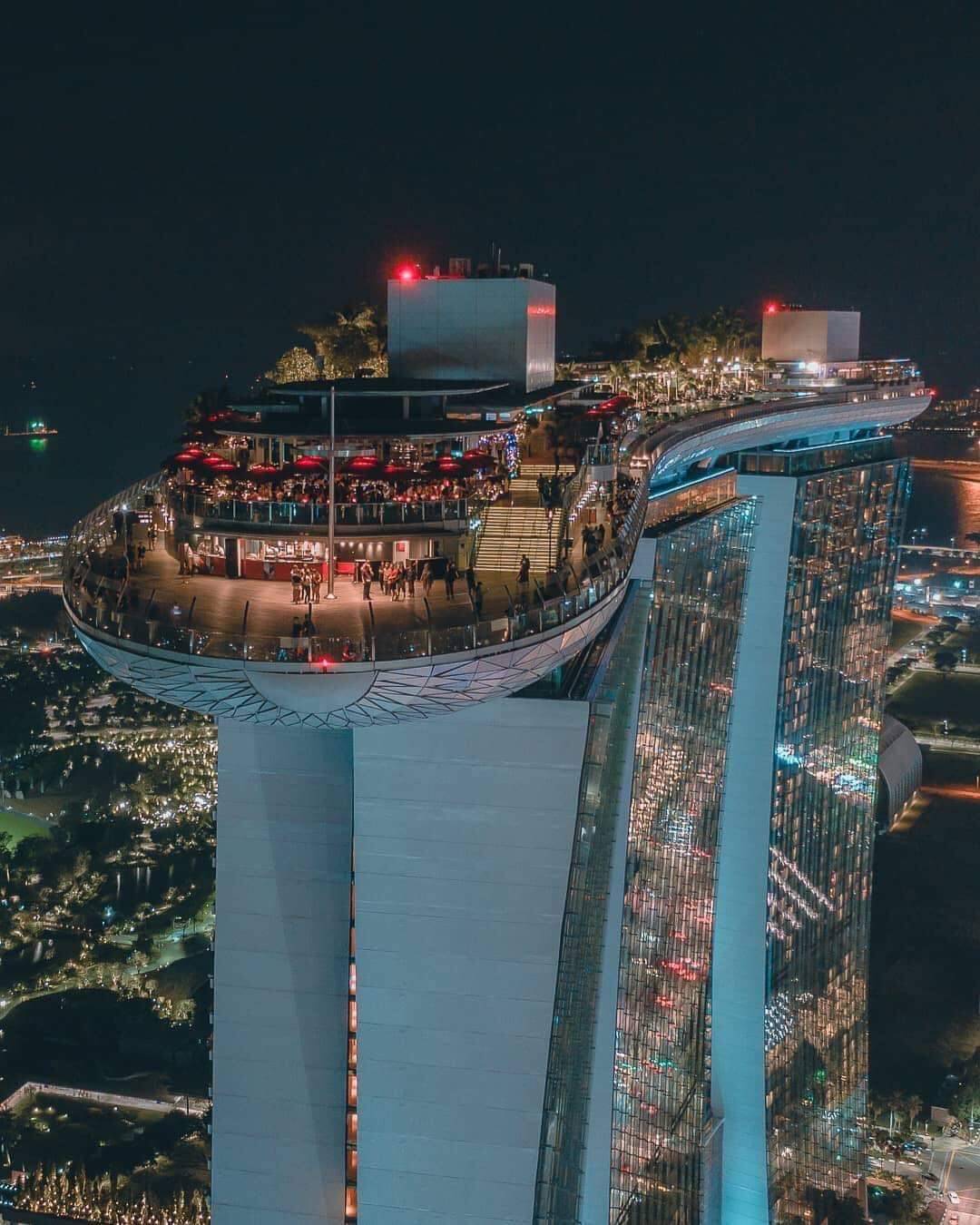 Зочид буудлын онцлог болсон тэнгэрийн цэцэрлэгт хүрээлэн ( sky park) нь барилгын дээд талд байрлах усан сан, цэцэрлэгт хүрээлэн, гүйлтийн зам бүхий гурван акр талбай бүхий цэцэрлэгт хүрээлэн юм. Цэцэрлэгт хүрээлэн нь гурван цамхгийн орой дээр гүүрлэн холбосон байдалтай байдаг. SkyPark-ийн их биеийг талбайгаас гадуур 14 тусдаа ган хэсэгт урьдчилан үйлдвэрлэж, дараа нь цамхгийн орой дээр угсарсан байна. Усан сангийн их бие доор дөрвөн хөдөлгөөнт холбоос байдаг бөгөөд тэдгээр нь цамхгийн байгалийн хөдөлгөөнийг тэсвэрлэхэд туслах зорилготой бөгөөд үе бүр нь өвөрмөц хөдөлгөөнтэй байдаг ба 500 миллиметр хүртэл хөдлөх боломжтой. Салхи болон урт хугацааны ашиглалтад гарч болох газрын гадаргын суултаас урьдчилан сэргийлэх үүднээс инженерүүд 500 цэгт тохируулга бүхий тусгай хөлнүүдийг усан сангийн доор байршуулж хийжээ. Энэхүү тохируулгатай систем нь тавцангийн ирмэг дээр байрлах асар том усан сангийн хэвийн ажиллагаанд чухал ач холбогдолтойгоор хийгджээ.