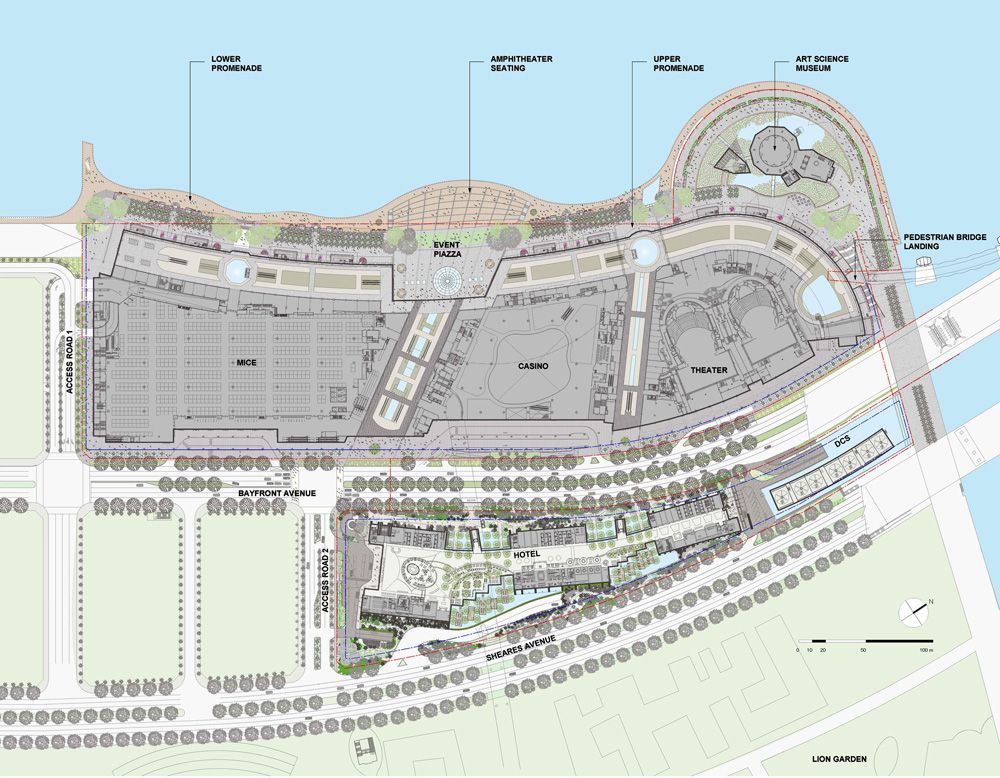 Энэхүү амралтын газрын дизайн загварыг Моше Сафди (Еврей гаралтай Израиль, Канад, Америкийн иргэншилтэй архитектор, хот төлөвлөгч, сурган хүмүүжүүлэгч, онолч, зохиолч. Сафди 50 гаруй жилийн карьертай бөгөөд тухайн газрын соёл газарзүйн байдал болон гүн ухааныг архитектуртаа шингээж ажилладагаараа алдартай нэгэн. Тэрээр технологийн шинэчлэлийг байнга эрэлхийлдэг 20-р зууны хоёрдугаар хагас, 21-р зууны эхэн үед том байр суурьтай архитектор юм. Дизайны санаагаа анх хөзрөн байшингаас авчээ. Дизайны онцлог нь 2500 энгийн болон люкс өрөө бүхий 3 ширхэг зочид буудлын цамхаг бөгөөд хүлээлгийн танхим нь нэвт үргэлжлэн 3 цамхагийг сууриар нь холбосон байдалтайгаар загварчлагдсан байдаг. Казиногийн барилга нь төв хэсгээрээ задгай дээвэртэй дөрвөн давхар барилга байх бөгөөд нэг газарт дөрвөн түвшний бооцоот тоглоомнуудаас гадна хөгжөөнт тоглоомны хэсэг ч бас цогцлоосон байдаг. Уг цогцолборт зочид буудал, казиногаас гадна бусад барилгууд буюу 45,000 хүртэлх хүний багтаамжтай 19,000 м2 Урлагийн, шинжлэх ухааны музей, 110,000 м2 талбай бүхий хурал уулзалтын төвүүд байдаг.