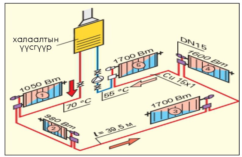 Зураг 3. Давхрын халаалт, нэг хоолойт систем