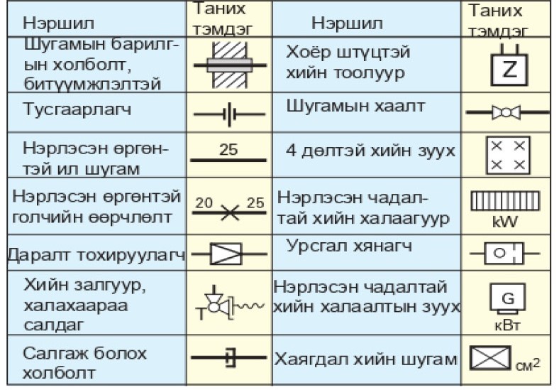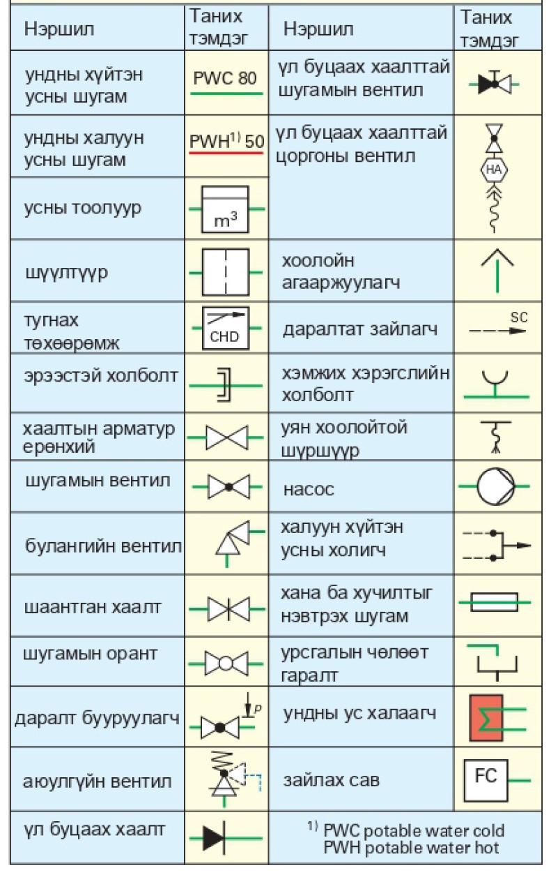Хүснэгт 1. Ундны усны төхөөрөмжийн сүлжээний схем