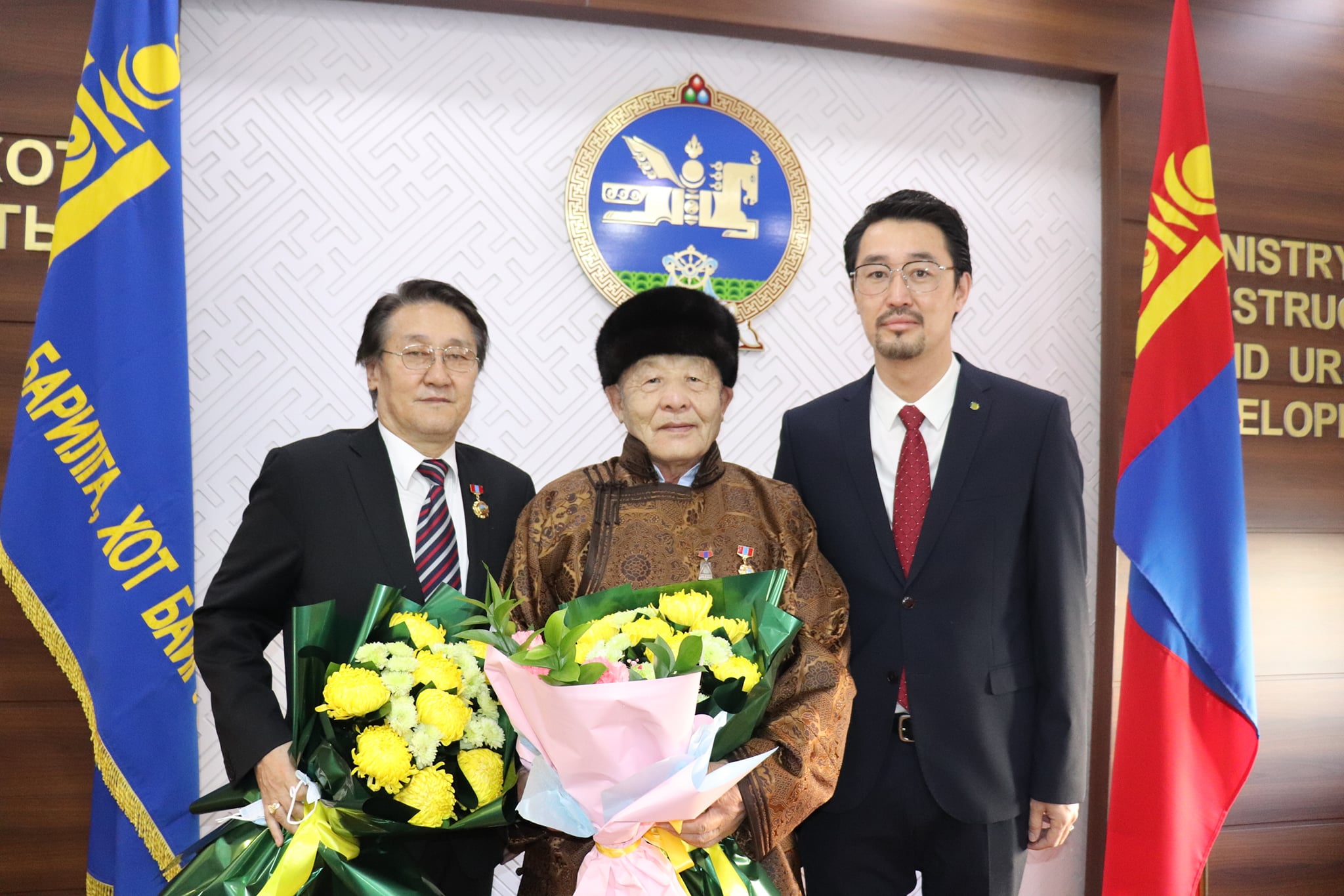 Монголын Барилгын Инженерүүдийн Холбооны ерөнхийлөгч А.Ариунболд болон Удирдах зөвлөлийн төлөөллүүд эрхэм хүндэт гавьяатуудыг хүлээн авч хүндэтгэл үзүүллээ. Гавьяат барилгачин Э.Ганзориг, Гавьяат багш Ж.Гэрэлхүү нартаа Монголын барилгын салбарын мянга мянган инженерүүд, Холбооны гишүүдийн нэрийн өмнөөс баярын мэнд дэвшүүлж, амьдралд тань сайн сайхан бүхнийг хүсэн ерөөе.