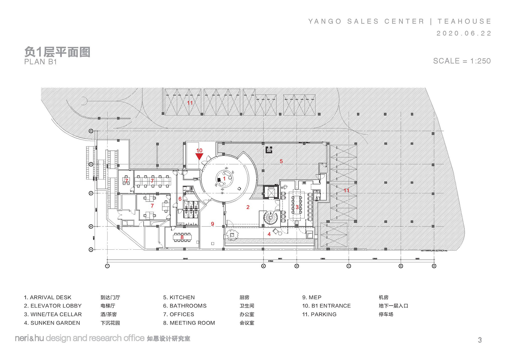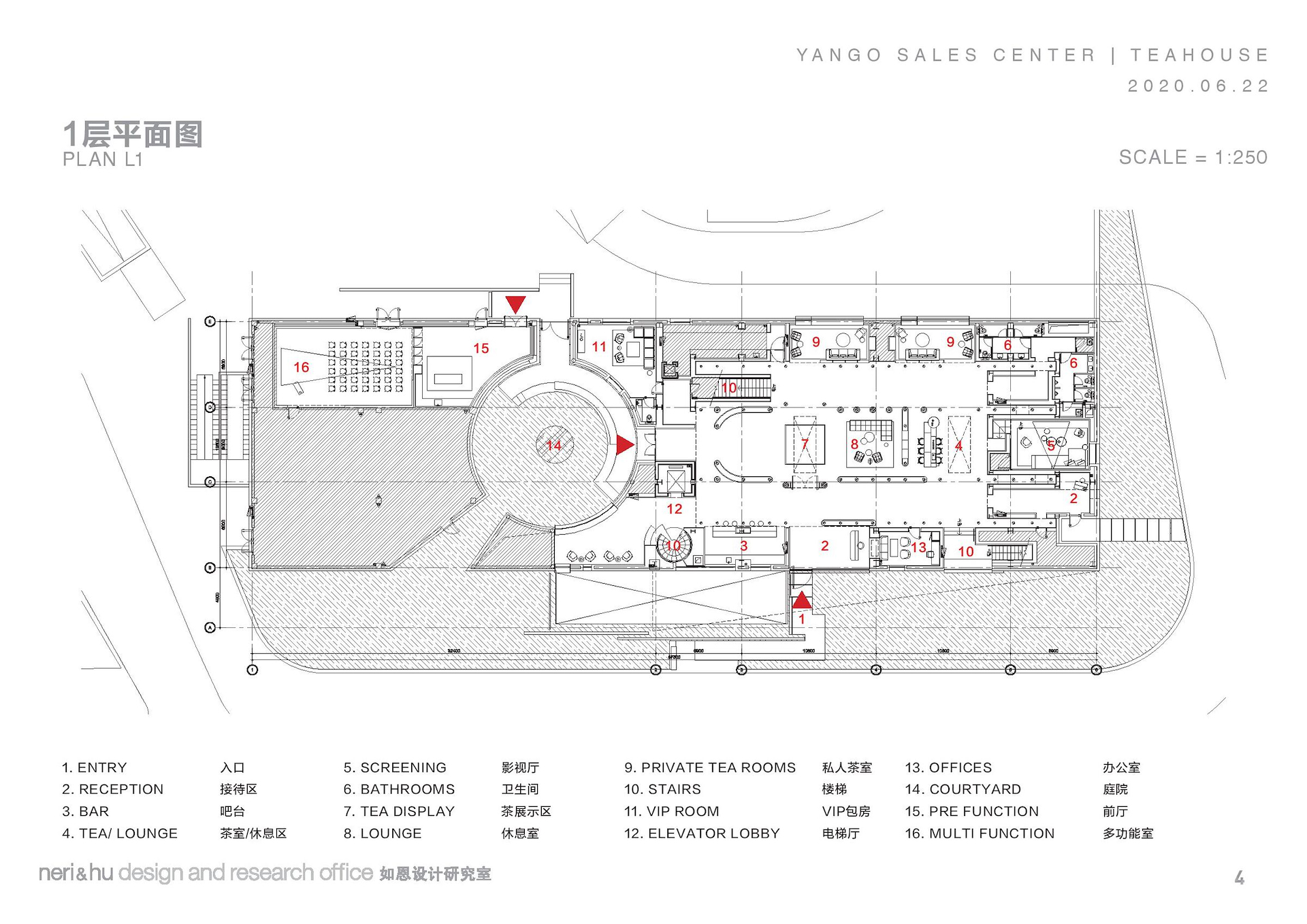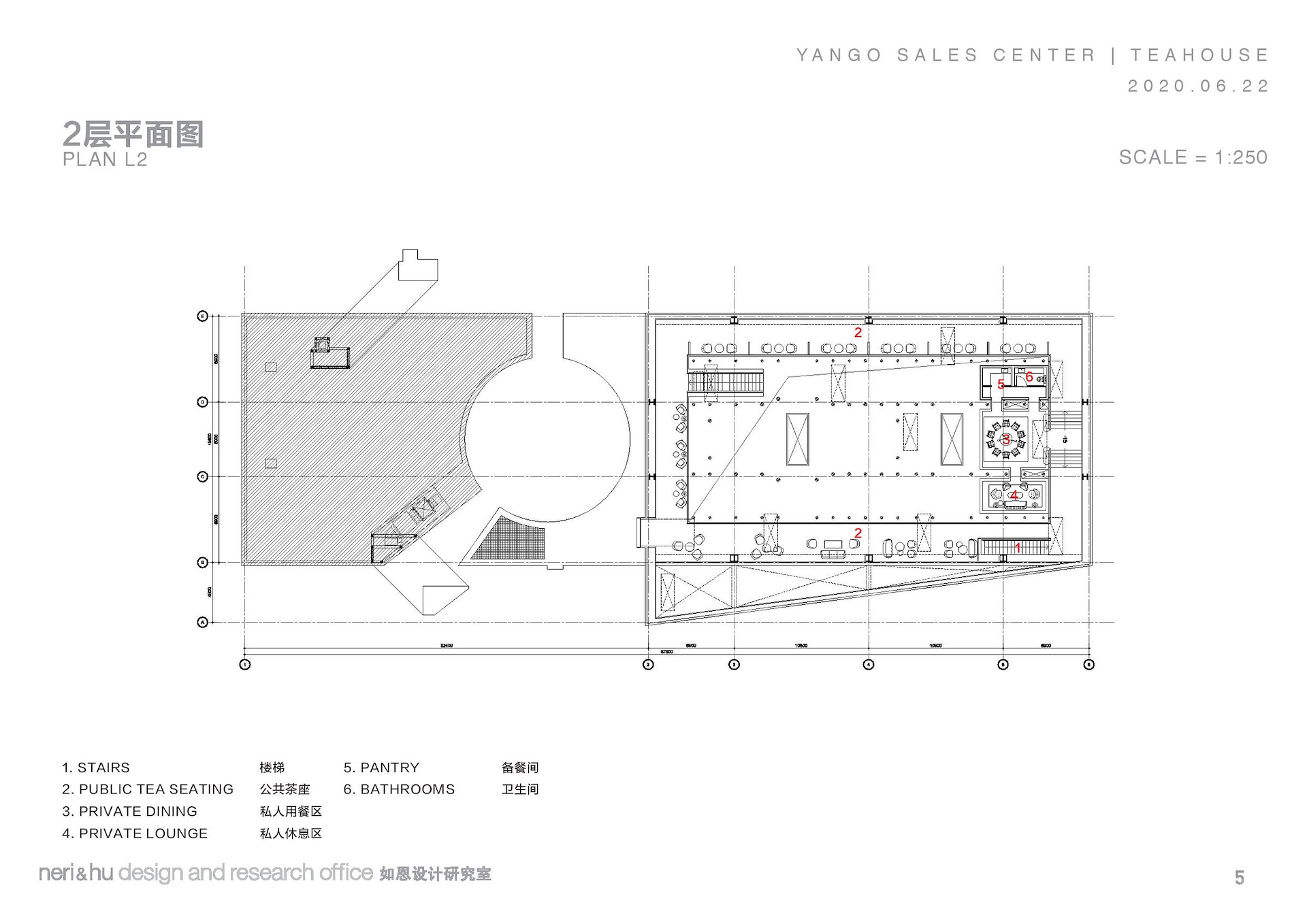 Уг ресторан нь Чин гүрний өндөр албан тушаалтны модон өргөө, байгууламж, хашаа, гоёл чимэглэл, модон сийлбэрүүдээр дүүрэн бөгөөд үнэт олдворуудыг илүү тодотгож өгөхийн тулд барилгын бүхий л өнцгөөс хэсгээс нар тусах, байгалийн гэрлийг нэвтрүүлэх шийдлийг бий болгожээ. Энэ нь үйлчлүүлэгчдэд нууцлаг, архитектурын онцлог орон зай, зохион байгуулалтыг мэдрэх нөхцөлийг бүрдүүлсэн шийдэл болжээ.