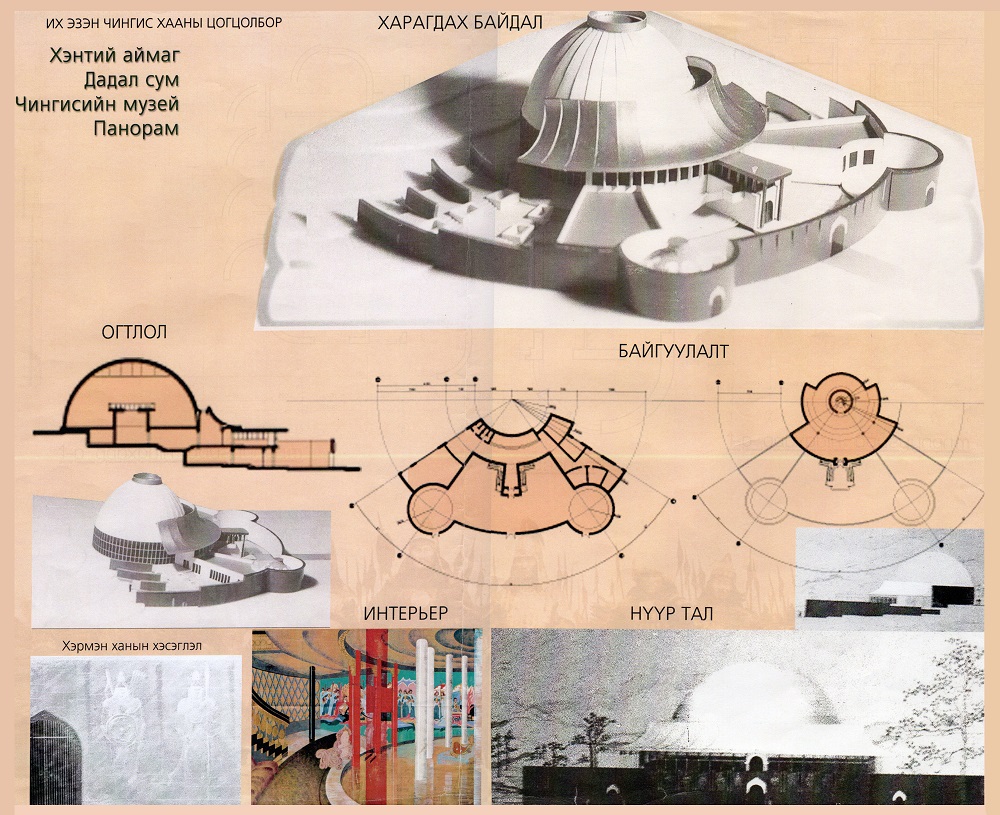 Тухайн үед Монголын архитектурт Нүүдлийн соёл - иргэншлийг илтгэн, нилээд боловсронгуй болж үүссэн тэрэг гэрийн дүр төрхийг уг өргөө - музейн гол санаа болгож 42 м*36м талбай бүхий, голдоо 15м-н диаметрийн дугуй заалтай чөлөөтэй орон зайд музей байгуулж, дээврийг ашиглах боломжтойгоор төсөөлсөн.