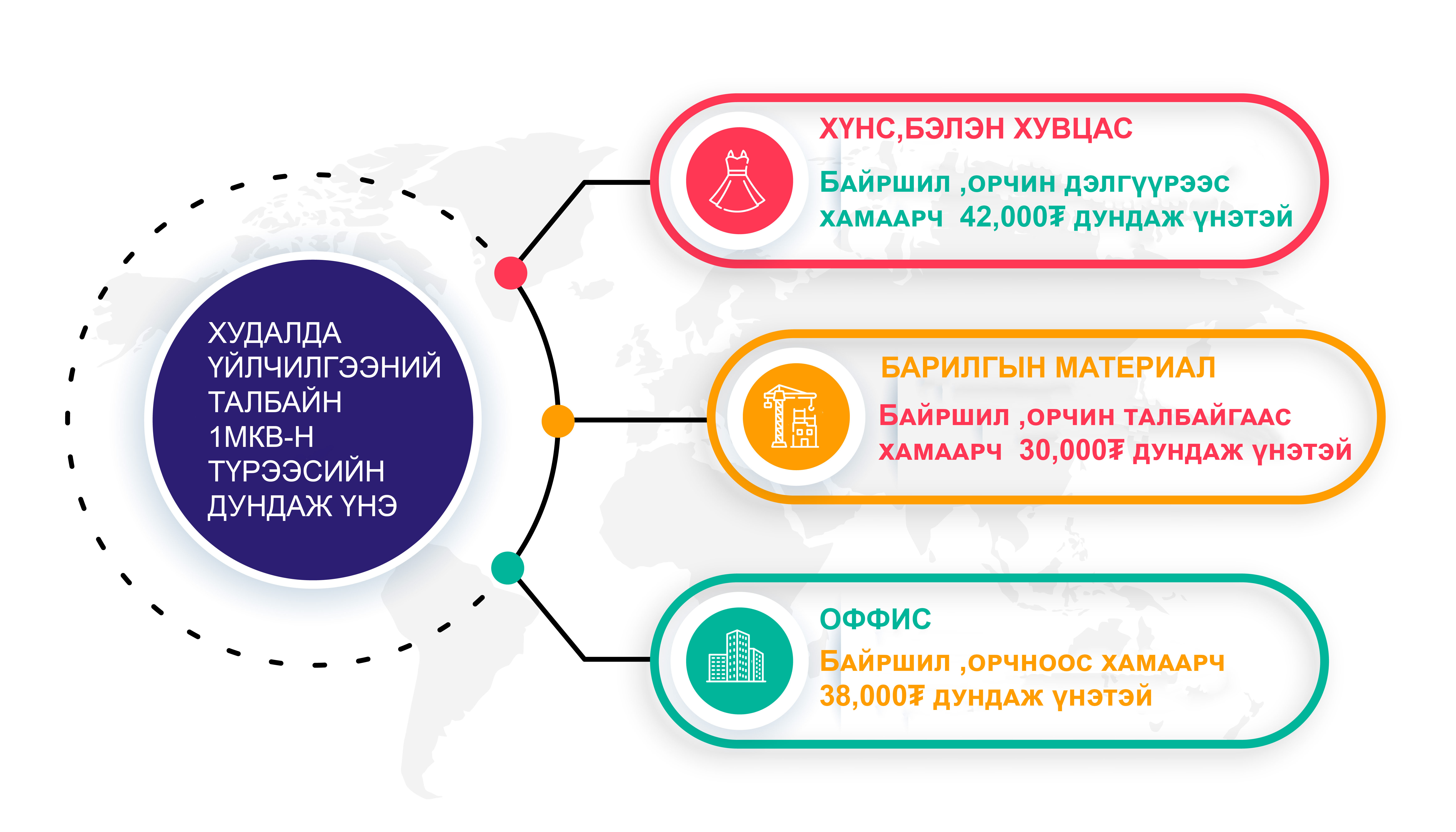 Манай улсын хувьд түрээсийн талбайн үнэ төрөл болон орчноосоо ихээхэн хамаардаг байна.