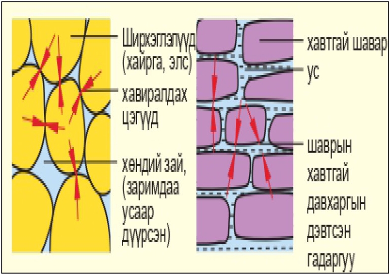 Зураг 1. Барьцалдамтай бус ба барьцалдамтгай хөрс