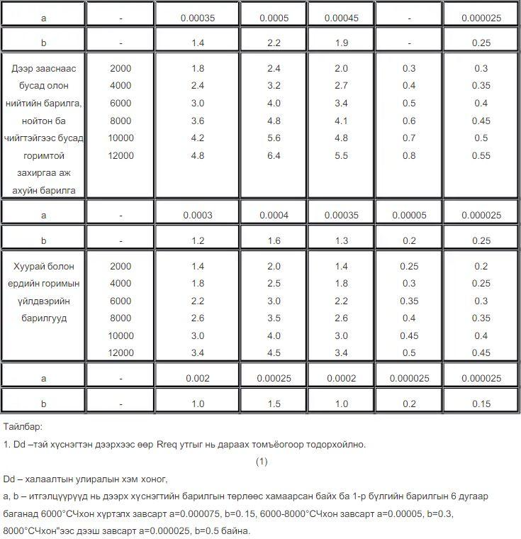 Жич: Хашлага бүтээцийн дулаан дамжуулалтын эсэргүүцлийн нормчлогдсон утга бүхий хүснэгтийг хавсралтаар (Хүснэгт №3)-д оруулав.