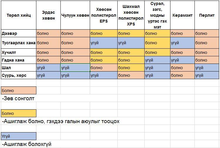 Гэхдээ үүнээс зөвхөн манайд түлхүү ашиглагддаг дулаалгын материалын талаар үргэлжлүүлэн үзэцгээе.
