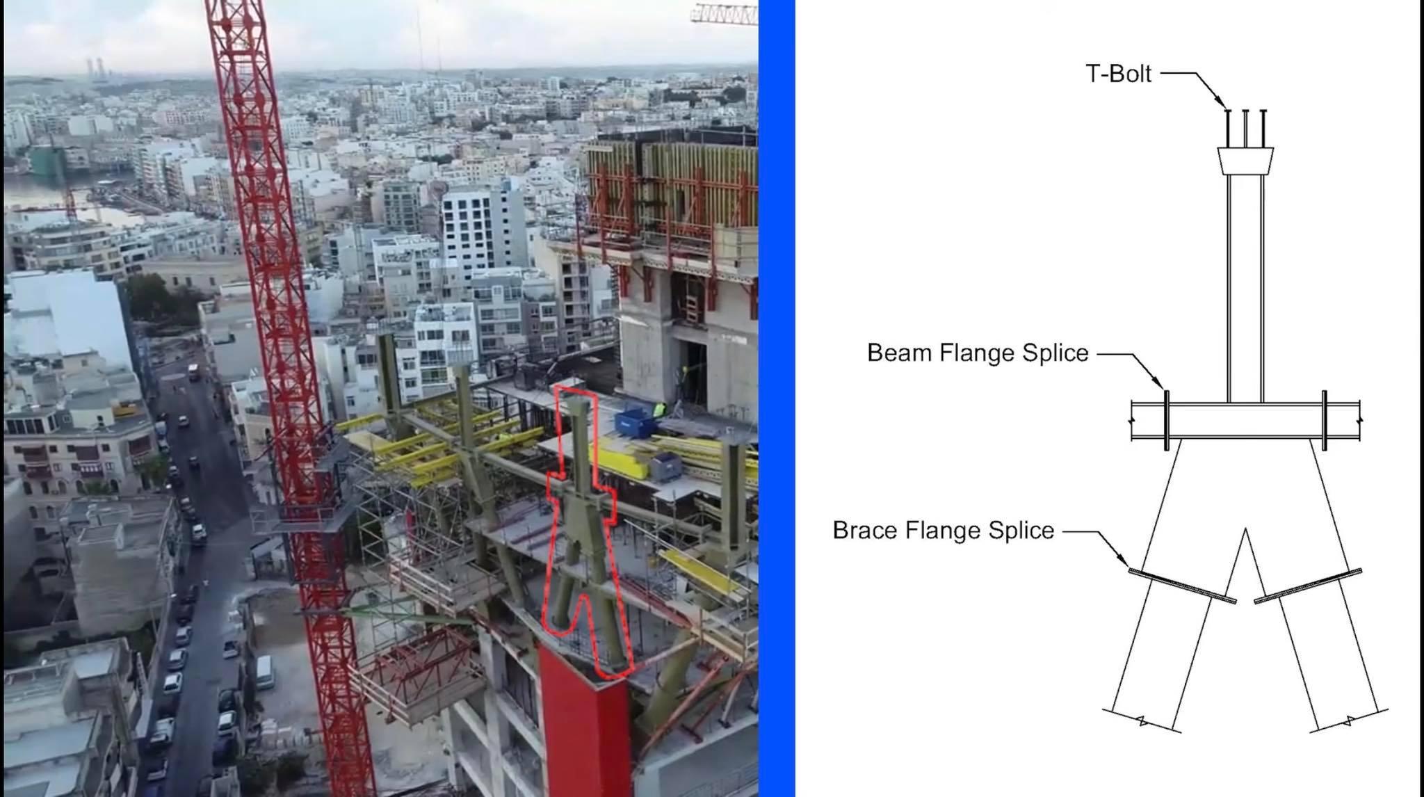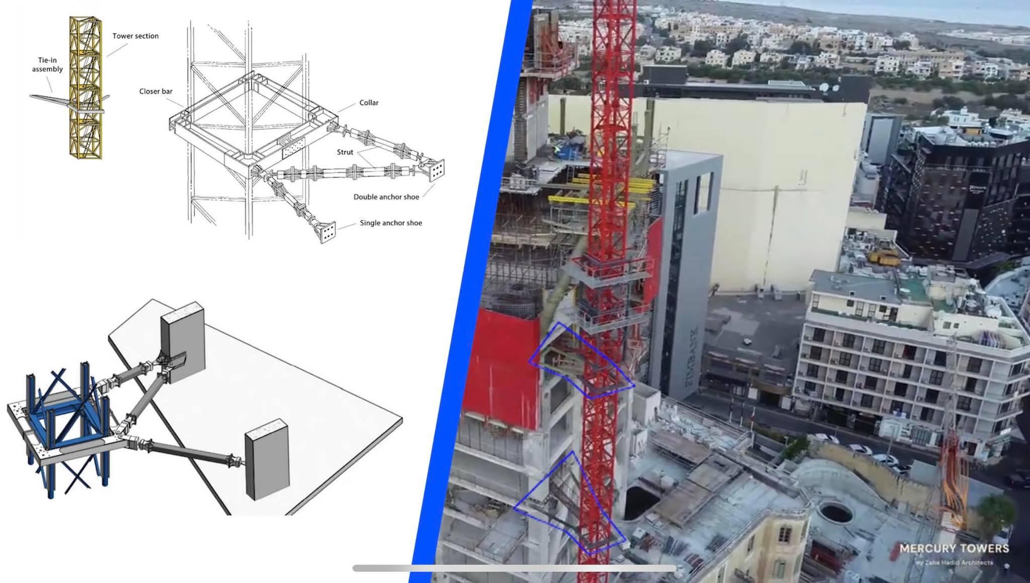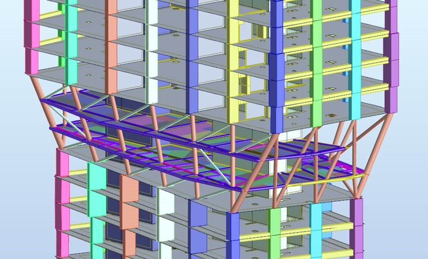 Архитектурын шийдлээр дунд хоёр бетон багана нь тэнхлэгийн хүчээр бусад хүрээлэн буй багануудыг түшиглэн байрлана. Энэхүү байгууламжийг барихын тулд хайч шиг хэлбэртэй бетонон ханаар 2 тауэрын холболтуудыг хийж өгсөн. Энэ нь барилгын ажлыг нурах, бүтэлгүйтэхээс сэргийлдэг юм.