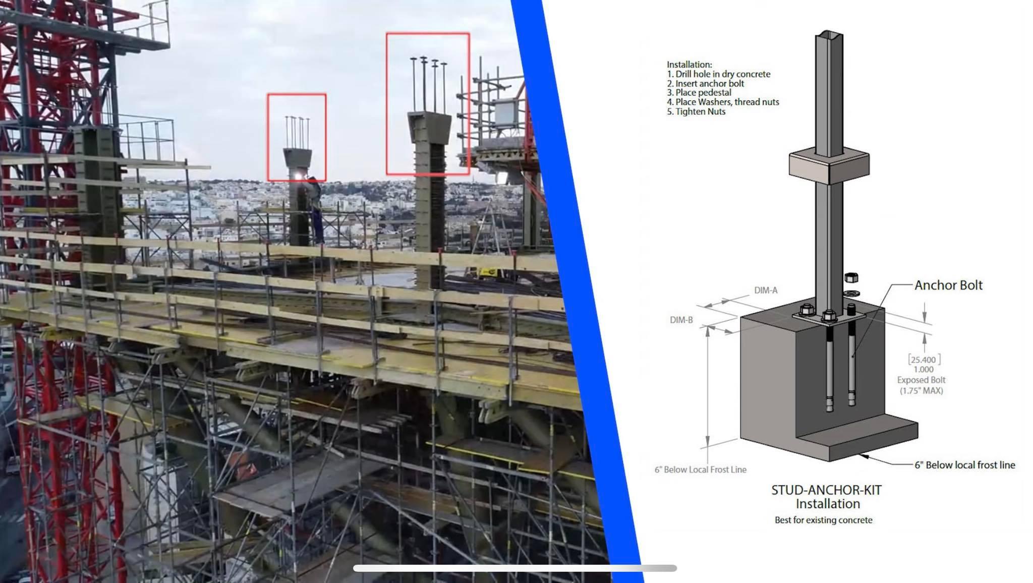 Анкерын боолт нь үндсэн материалд баганыг бэхлэх үүрэгтэй бөгөөд Меркурий Тауэрын барилгын ажил дээр (25.400) 1.000, Ил гарсан боолтын хэмжээ 1,75 инчтэйгээр ашиглагдсан.