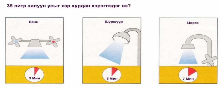 Cонирхуулахад бид өдөртөө хэрэглэдэг 35 л халуун усыг ердөө дараах хугацаанд дуусгадаг аж