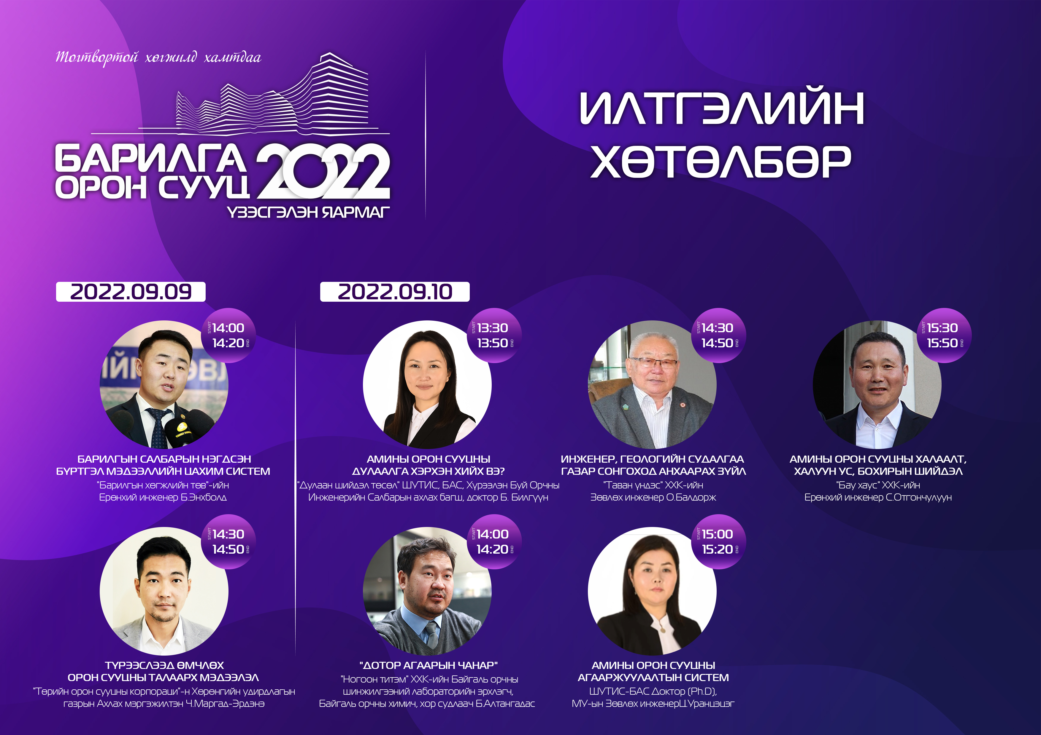 Мөн үзэсгэлэн, яармагт хүрэлцэн ирсэн иргэдэд мэдээлэл хүргэх зорилгоор салбарын мэргэжилтнүүдийг урин тодорхой сэдвийн хүрээн дэх илтгэлүүдийг үнэ төлбөргүйгээр үзэсгэлэнгийн тайзнаас цагийн хуваарийн дагуу хүргэдэг бөгөөд 9-р сарын 9, 10-ны өдрүүдэд дараах илтгэлүүд тавигдана.