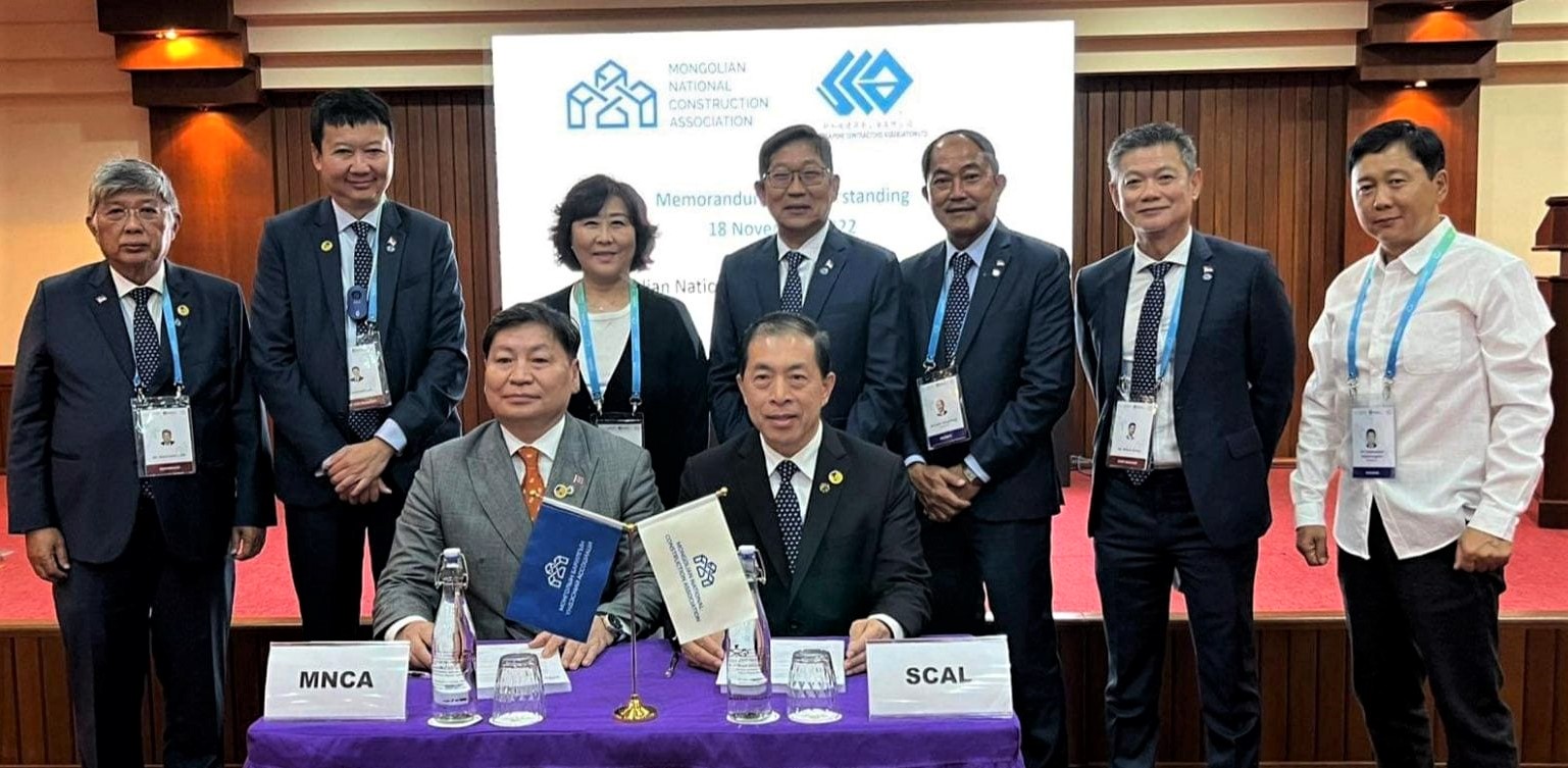 Ази, баруун номхон далайн Гэрээлэгчдийн ассоциациудын Олон улсын нийгэмлэг (IFAWPCA)-ийн 45 дахь удаагийн Чуулганы үеэр МБҮА ТББ-ын Ерөнхийлөгч Н.Баярсайхан, Гүйцэтгэх захирал Л.Хулан нар нь Сингапурын Гэрээлэгчдийн ассоциаци (SCAL)-ийн Ерөнхийлөгч Ng Yek Meng, Ерөнхийлөгч асан, Зөвлөх Desmond Hill, Ерөнхийлөгч асан Kenneth Loo нартай зангиагүй уулзалт хийж санал бодлоо солилцсоны үр дүнд МБҮА ТББ-ын Ерөнхийлөгч Н.Баярсайхан, Сингапурын Гэрээлэгчдийн ассоциацийн Ерөнхийлөгч Ng Yek Meng нар “Хамтран ажиллах санамж бичиг” -т дараах асуудлын хүрээнд гарын үсэг зурцгаалаа. Монгол Улсад МБҮА ТББ-аас хэрэгжүүлж буй барилгын тусгай зөвшөөрлийн чиг үүргийг дэмжих зорилгоор Сингапур Улсын Барилгын тусгай зөвшөөрлийг олгодог үйл ажиллагааны талаар мэдээллээр хангах,