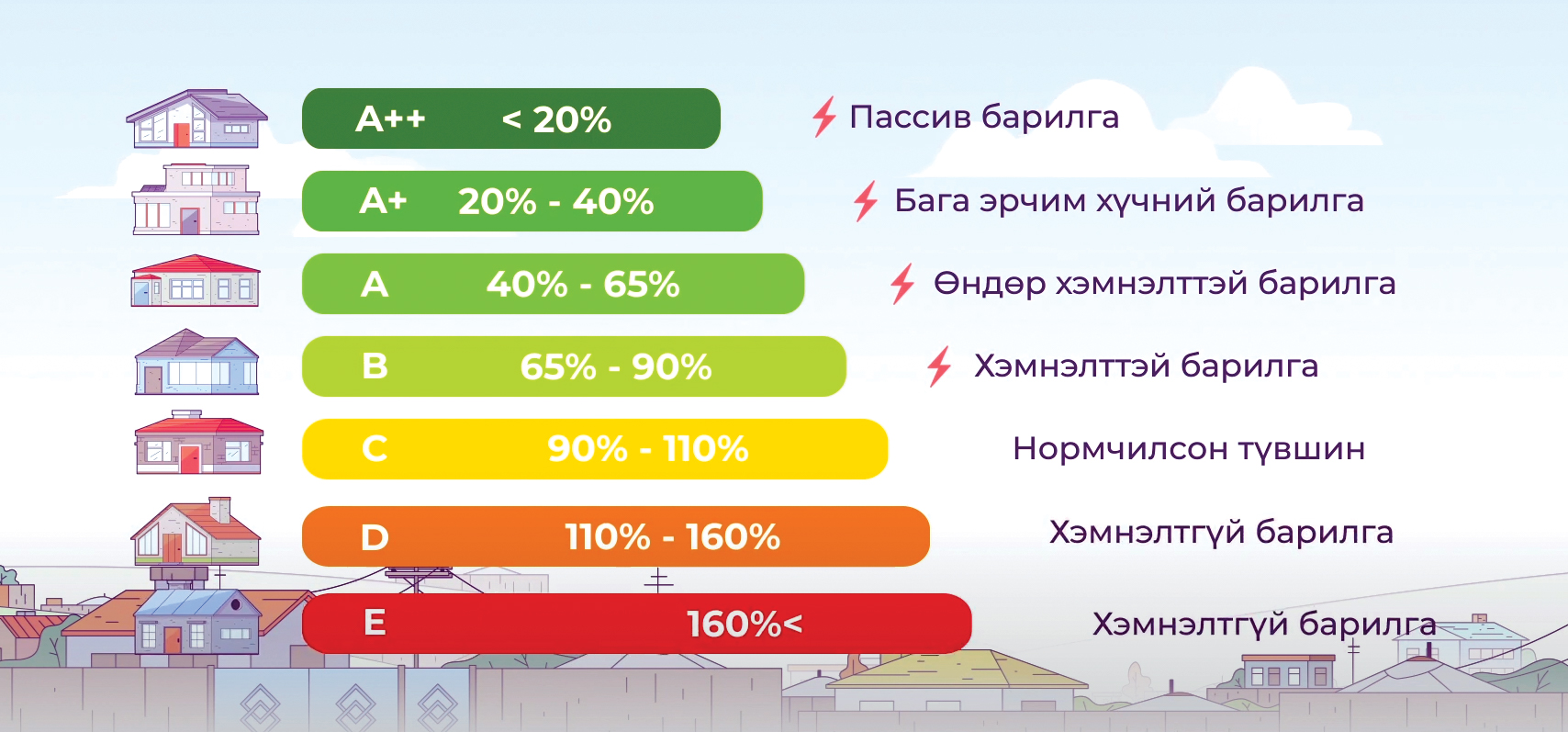 Эрчим хүчний хэмнэлттэй барилгыг дараах үзүүлэлтээр тодорхойлно.