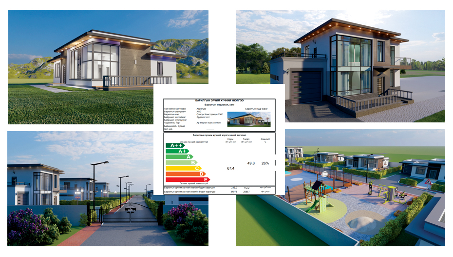 Монголын амины орон сууцны инновац хөгжлийн төв иргэд болон төсөл хэрэгжүүлэгчдэд эрчим хүчний хэмнэлттэй дулаан алдагдалгүй, эрчим хүчний үнэлгээний гэрчилгээтэй жишиг амины орон сууцны зураг төслийг боловсруулж, захиалагчийн хяналтыг хийн ажиллаж байна. Банкнуудын эрчим хүчний хэмнэлтэд амины орон сууцны ногоон зээлийн шалгууруудын нэг нь энэхүү эрчим хүчний үнэлгээний гэрчилгээ юм. Эрчим хүчний хэмнэлттэй амины орон сууц барих гэж байгаа иргэд юун түрүүнд мэргэжлийн байгууллагын зөвлөгөө, мэдээллийг авч зураг төслөө хийлгэж, гүйцэтгэлийн явцад ажлын зургийн дагуу хийгдэх нь чухал юм.