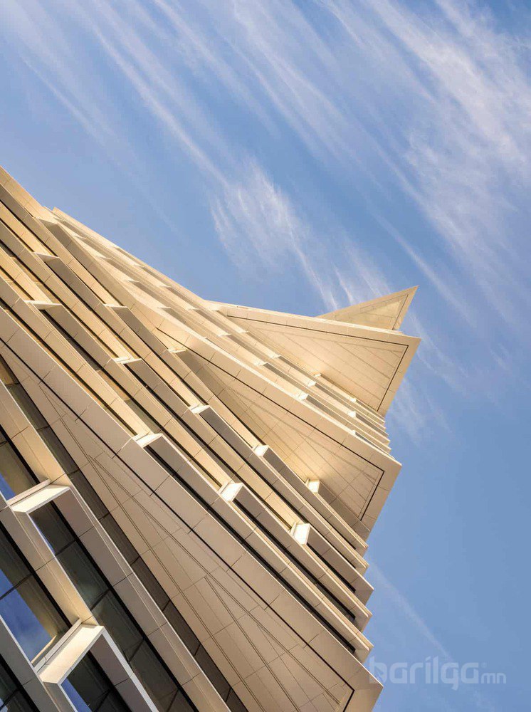 Гадна фасад нь өндөр чанартай ба хэт ягаан туяаны хамгаалалттай шиллэгээ нь нарны дулааныг шингээдэг. Хурц гэрлийг бууруулдаг нарны шил нь 17,205 кВт цаг хүртэлх цахилгааныг хэмнэдэг байна. (Хэт халалтыг 30% бууруулна).