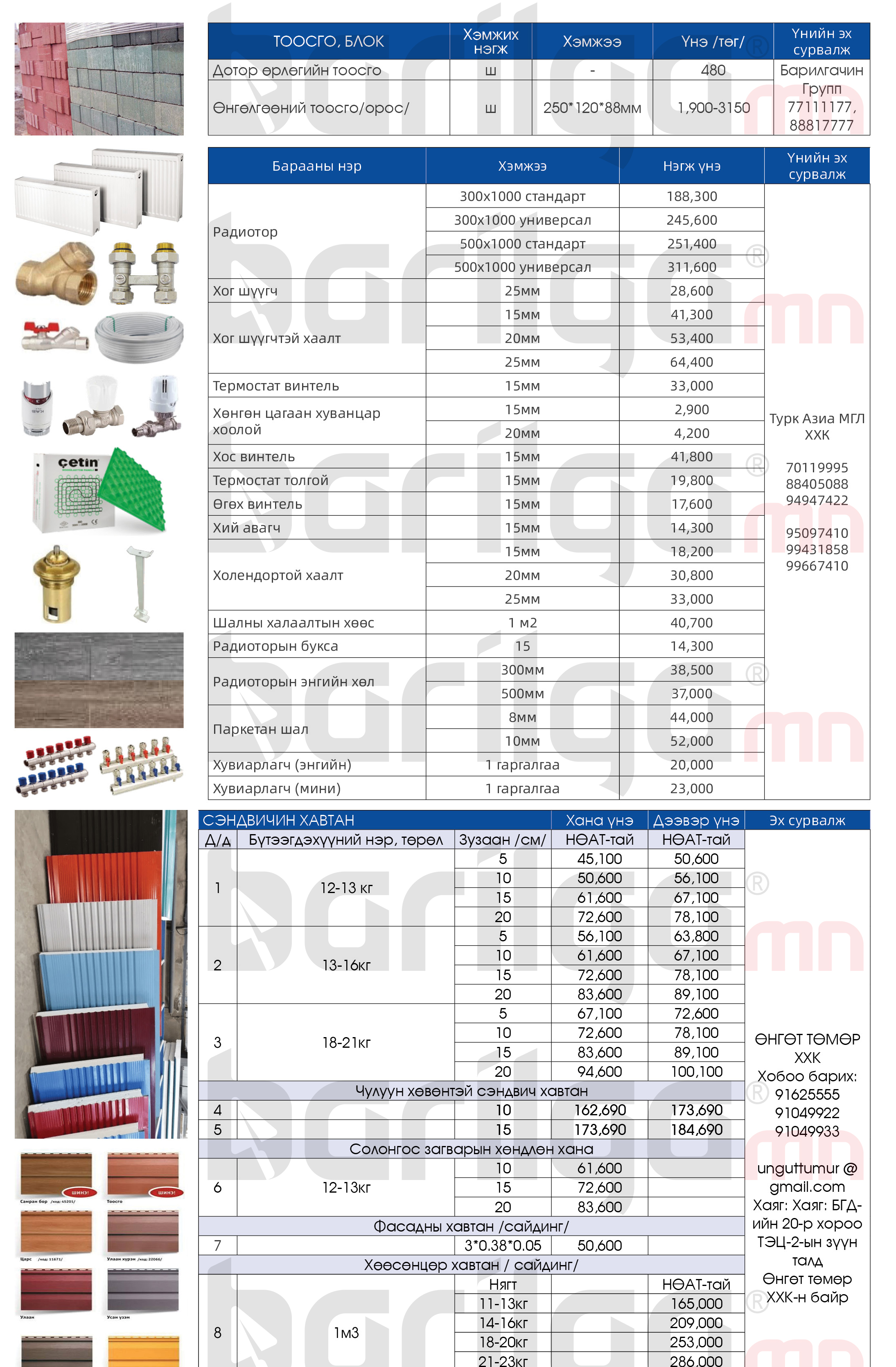 "Барилга.МН" сэтгүүлээс сар бүр хүргэдэг барилгын материалын үнэ ханшийн мэдээллийг уншигч танд хүргэж байна.