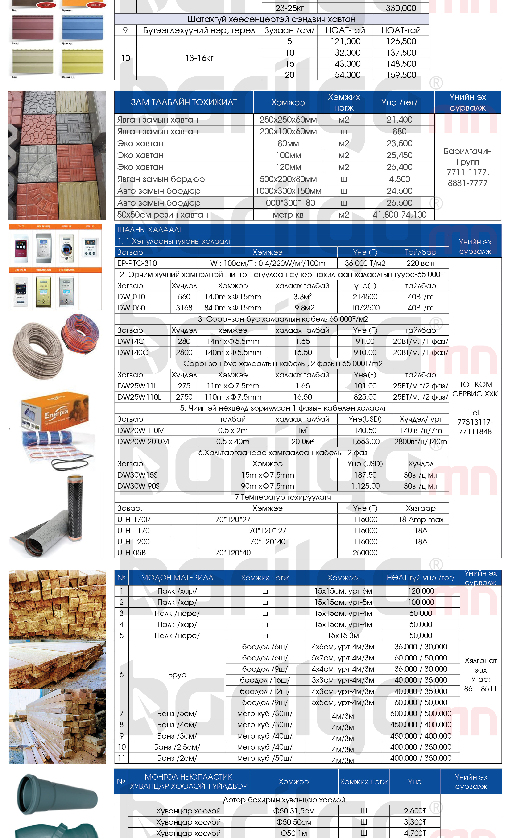 Эдгээр болон бусад барилгын материалуудын мэдээллийг ЭНД дарж үзнэ үү