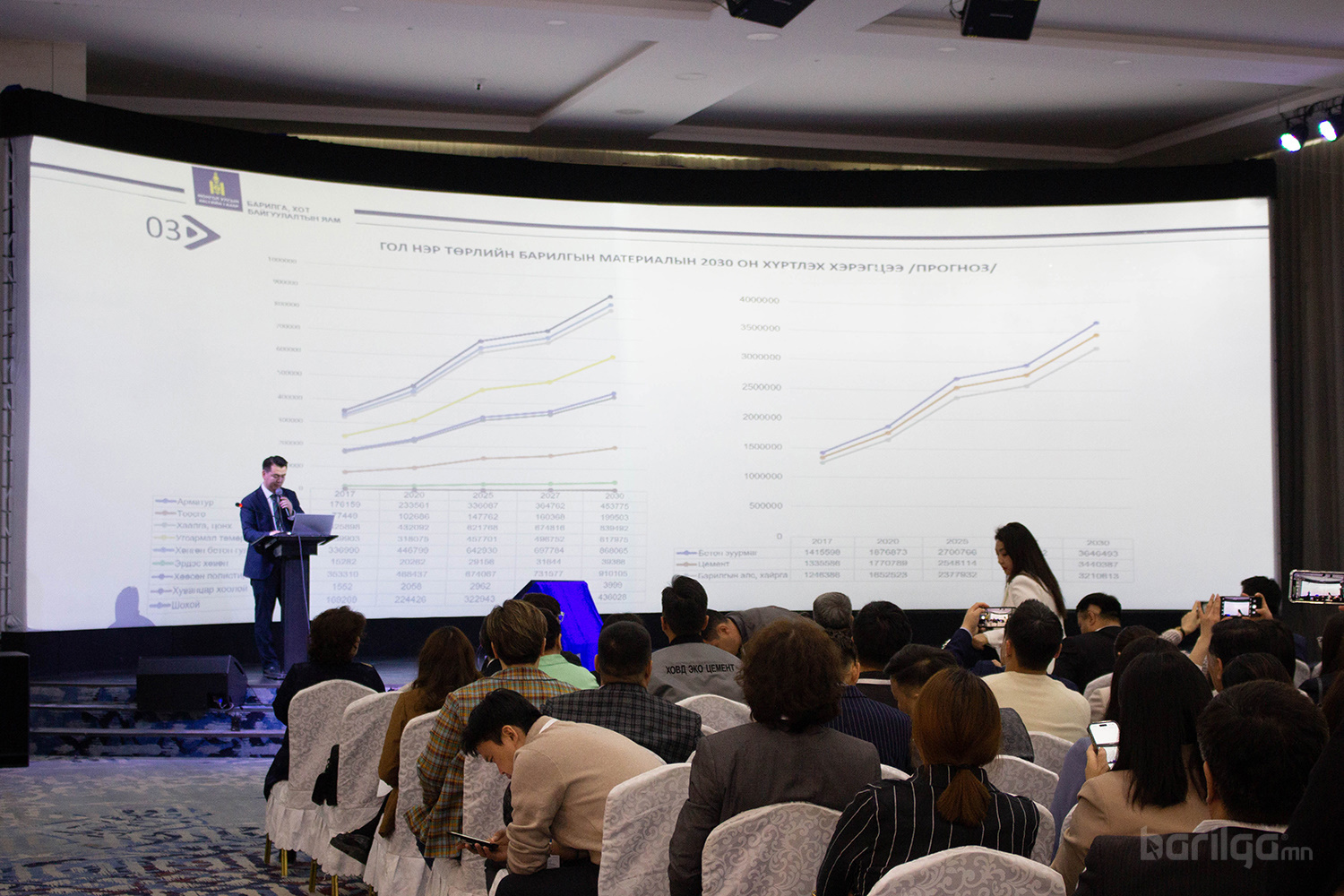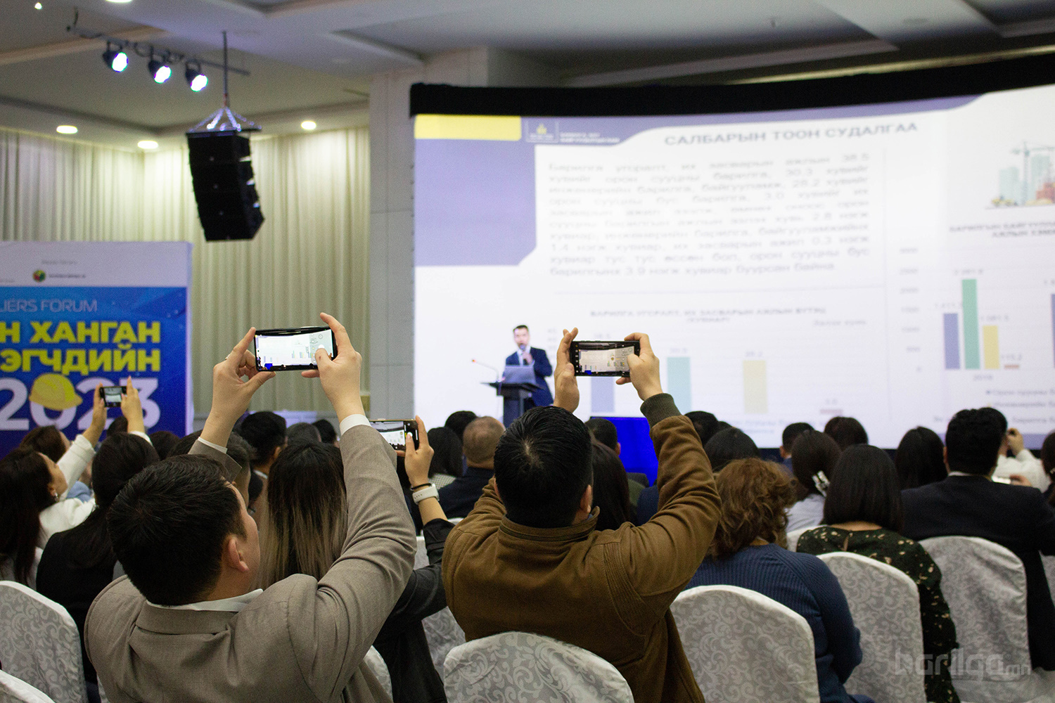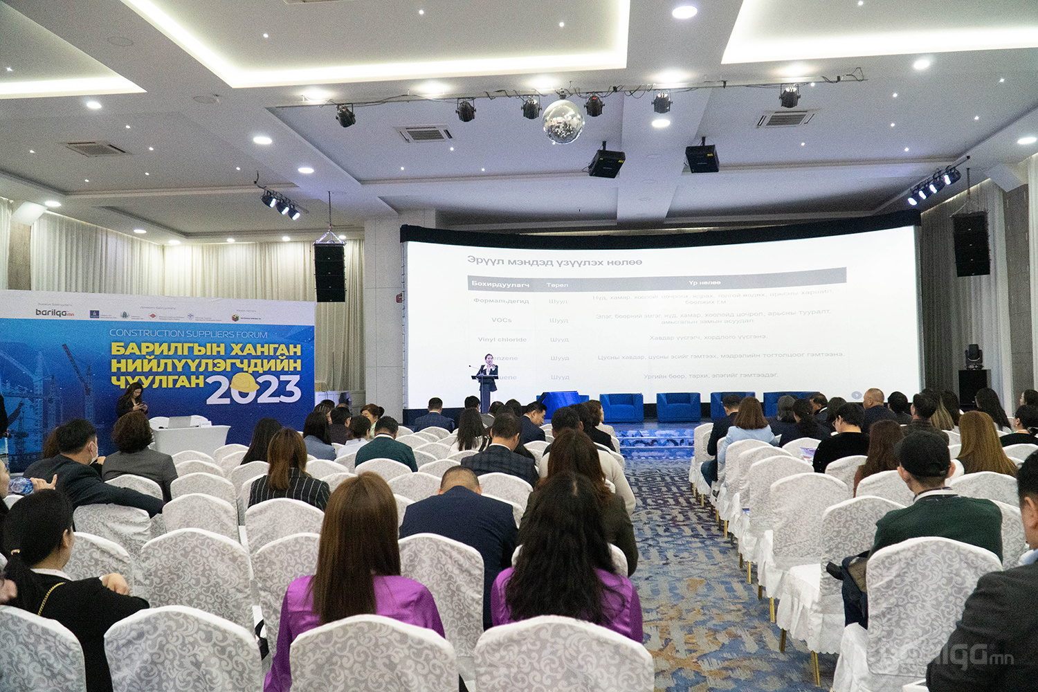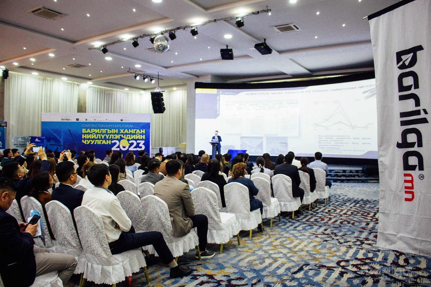 Барилгын ханган нийлүүлэгчдийн чуулганд 180 орчим салбарын бизнес эрхлэгч аж ахуйн нэгж байгууллагуудын удирдлагууд оролцож, Салбарын зах зээлийн судалгаа мэдээлэл, төрийн төслийн худалдан авалт санхүүжилт, үйлдвэрлэлийн боломж, орчин үеийн ханган нийлүүлэлт, логистикийн туршлага хэрэгжүүлэх боломжийн тухай мэдээлэл авч, тулгамдсан асуудлаа хэлэлцэж шийдвэрлэх арга замыг ярилцлаа.