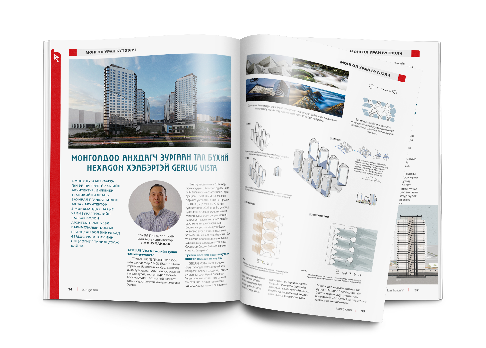 Монгол уран бүтээлч: Өмнөх дугаарт /№155/ “Эн Эй Пи Групп” ХХК-ийн Архитектур, инженер техникийн албаны захирал Г.Ганбат болон Ахлах архитектор З.Мөнхмандах нарыг урин зураг төслийн салбар болон архитекторын үзэл баримтлалын талаар ярилцсан бол энэ удаад GERLUG VISTA төслийн онцлогийг танилцуулж байна.