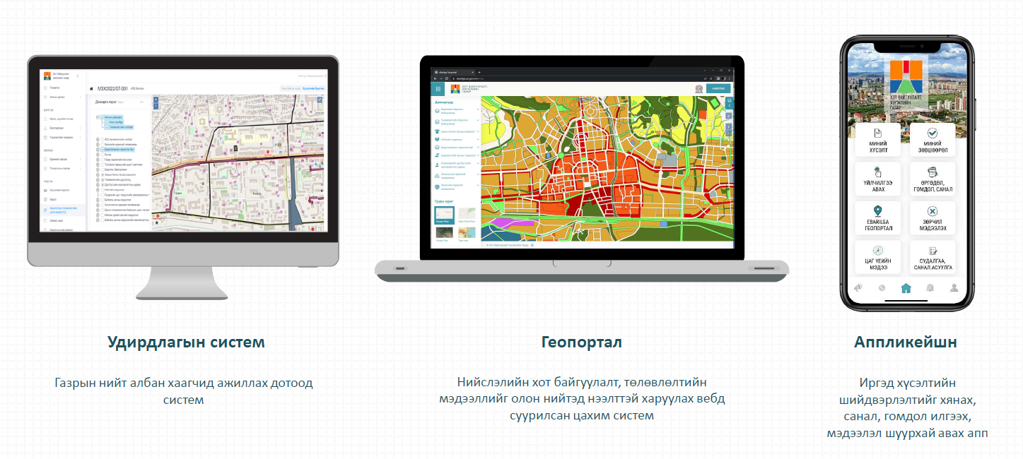 Геопорталд 9 төрлийн багц мэдээллийг харуулдаг. Хотын хөгжлийн ерөнхий төлөвлөгөө, хэсэгчилсэн ерөнхий төлөвлөгөө, барилгажилтын төслийн мэдээллийг, Архитектур төлөвлөлтийн даалгавар, Барилгын ажлыг эхлүүлэх, үргэлжлүүлэх зөвшөөрөл авсан эсэх зэрэг нийслэлийн нутаг дэвсгэр дэх хот байгуулалттай холбоотой зөвшөөрлийн мэдээллийг нээлттэй харах, Инженерийн шугам сүлжээний хамгаалалтын зурвасын мэдээлэл болон Улаанбаатар хотын орон зайн мэдээ, мэдээлэл /барилга, хаягжуулалт, нийгмийн дэд бүтцийн гэх мэт/ харах Хот байгуулалт, хөгжлийн газраас иргэн, хуулийн этгээдэд үзүүлдэг төрийн үйлчилгээний хүсэлтийг цахимаар илгээж, шийдвэрлэлтийг цахимаар хүлээн авах боломжтой.