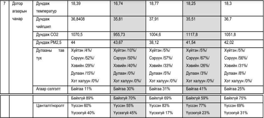 Өрөөний температур 25 С-ээс дээш гарах хугацаа жилд 10 хувиас ихгүй байх
