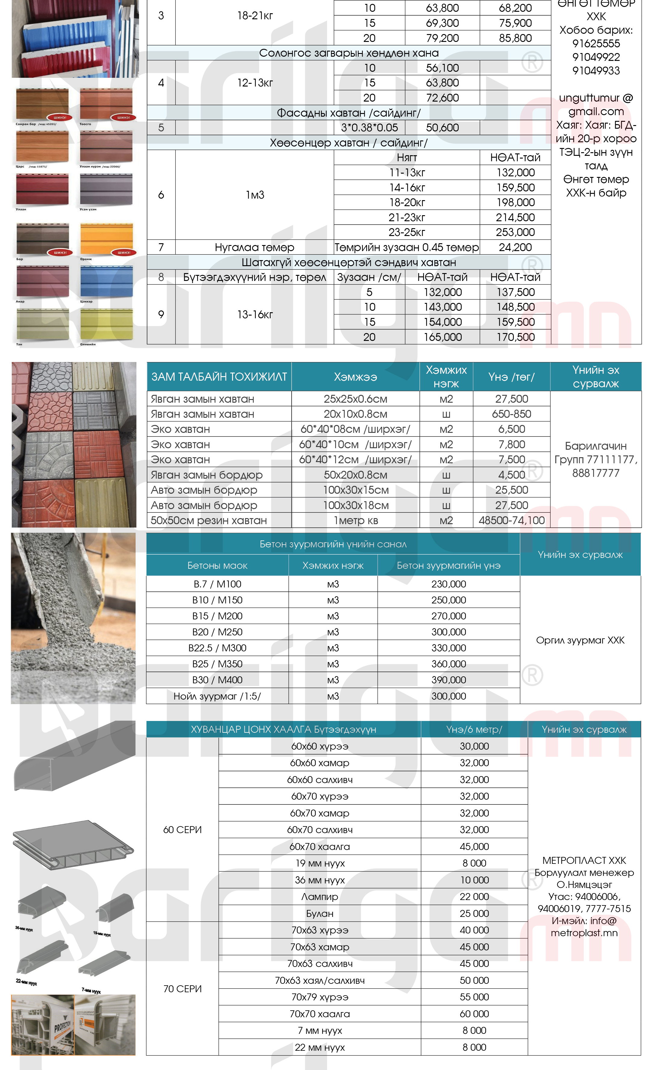 Эдгээр болон бусад барилгын материалуудын мэдээллийг ЭНД дарж үзнэ үү
