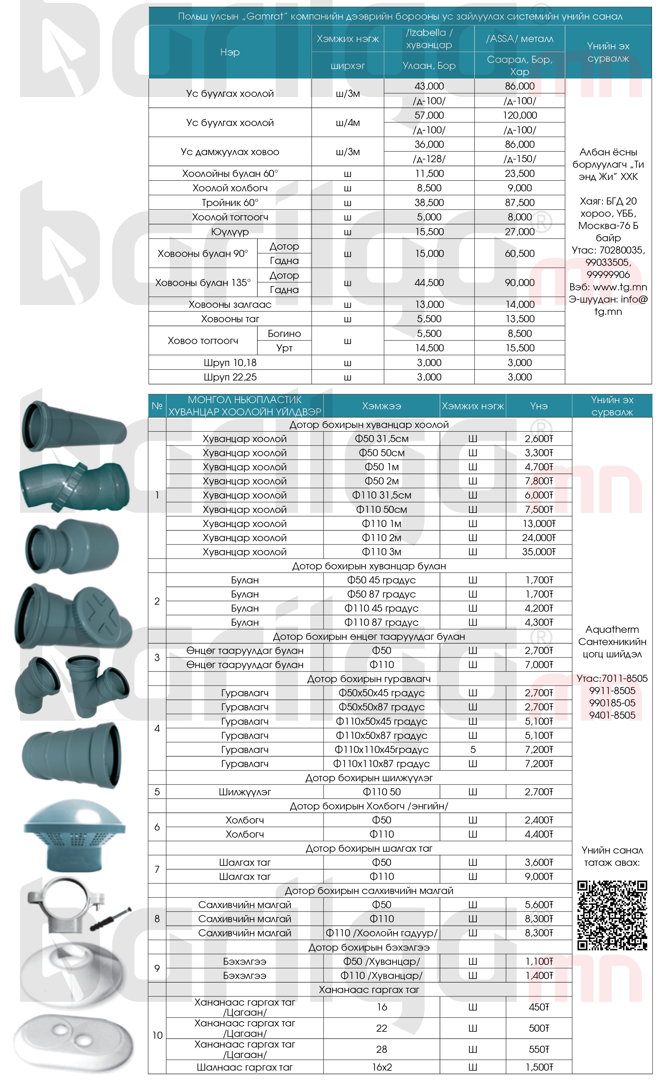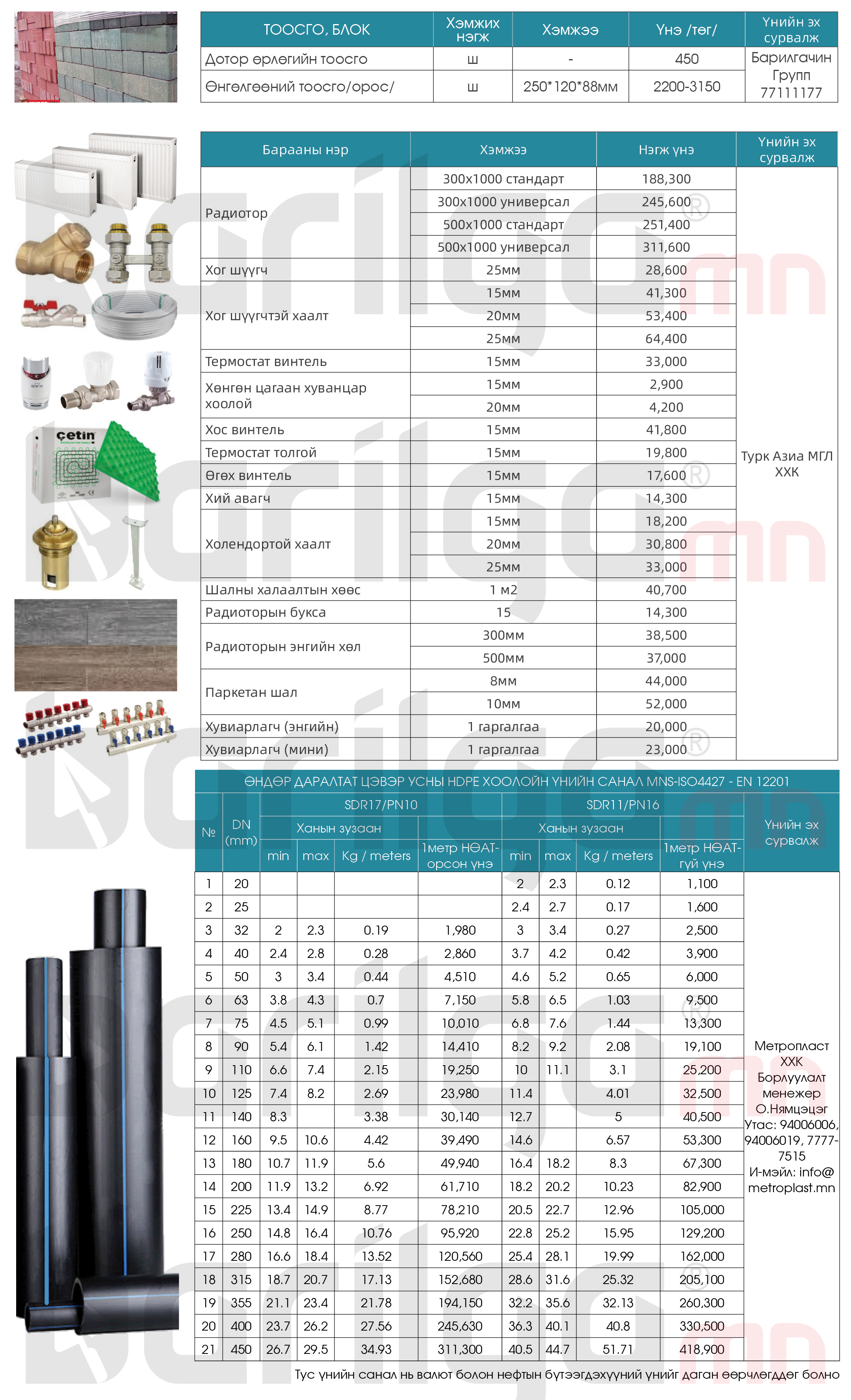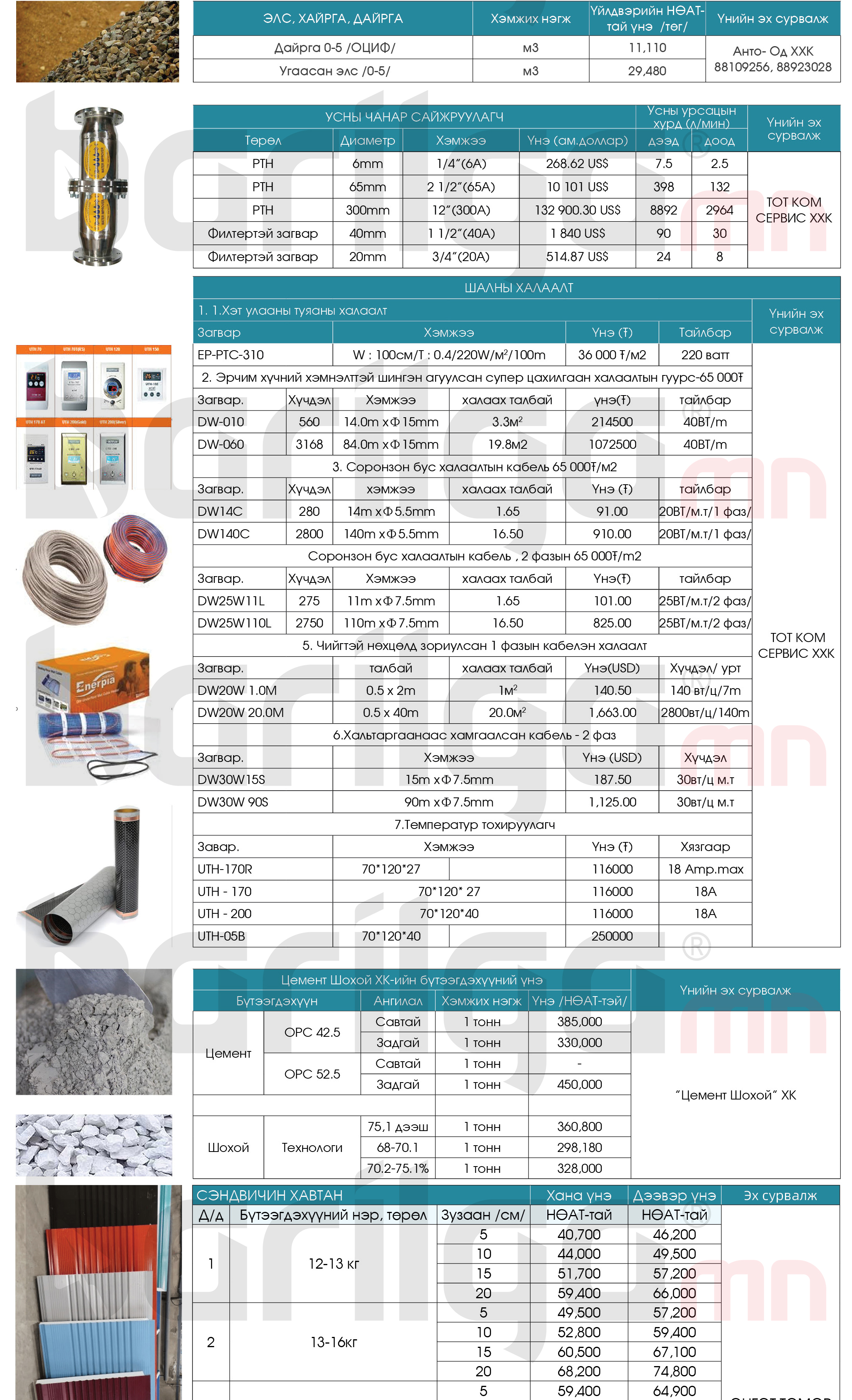 Дараах барилгын материалын үнэд НӨАТ орсон, тээврийн зардал ороогүй болно