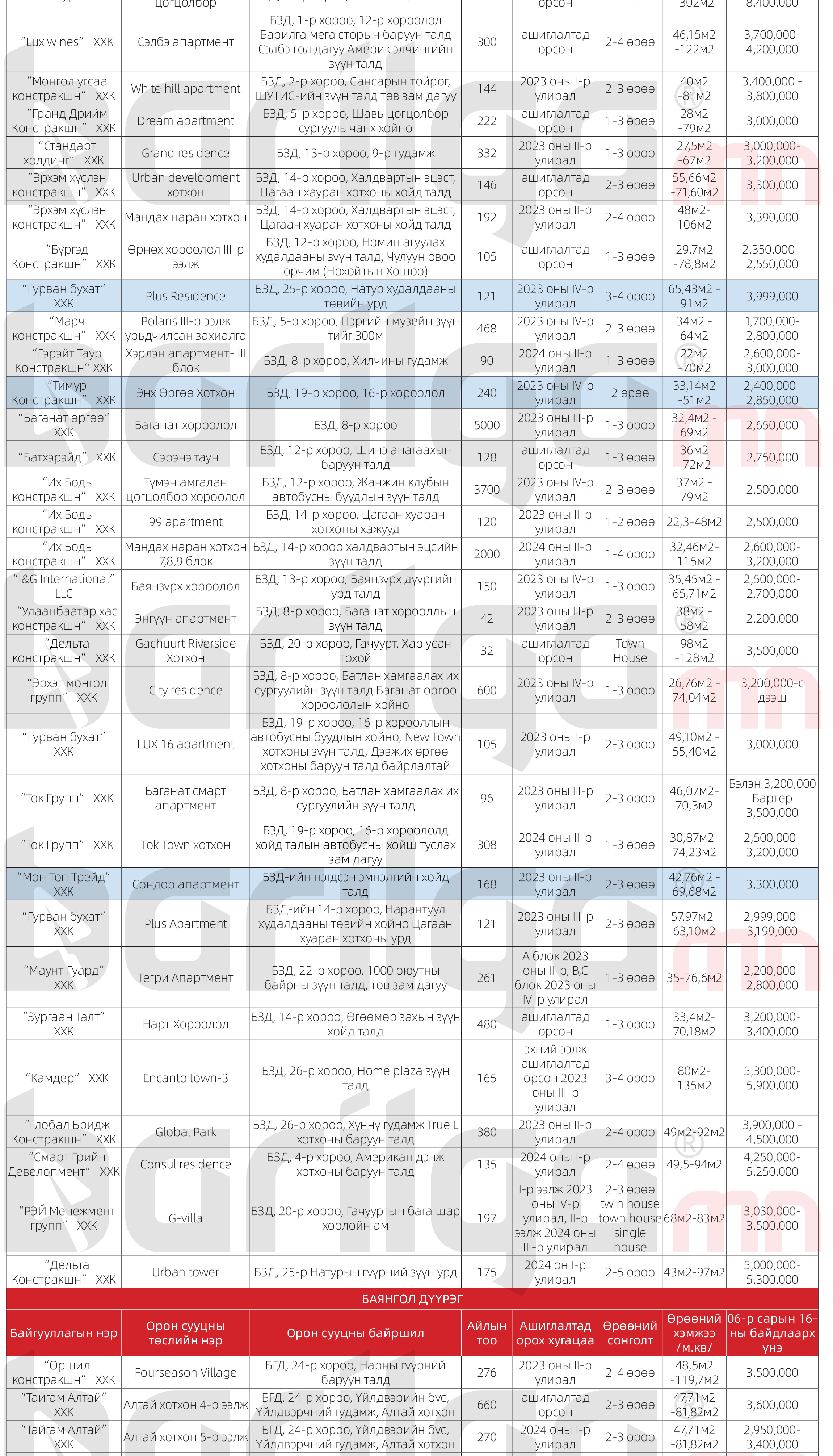 "Барилга МН" сэтгүүлээс сар бүр хүргэдэг ШИНЭ ОРОН СУУЦНЫ үнэ ханшийн мэдээллийг танд хүргэж байна.