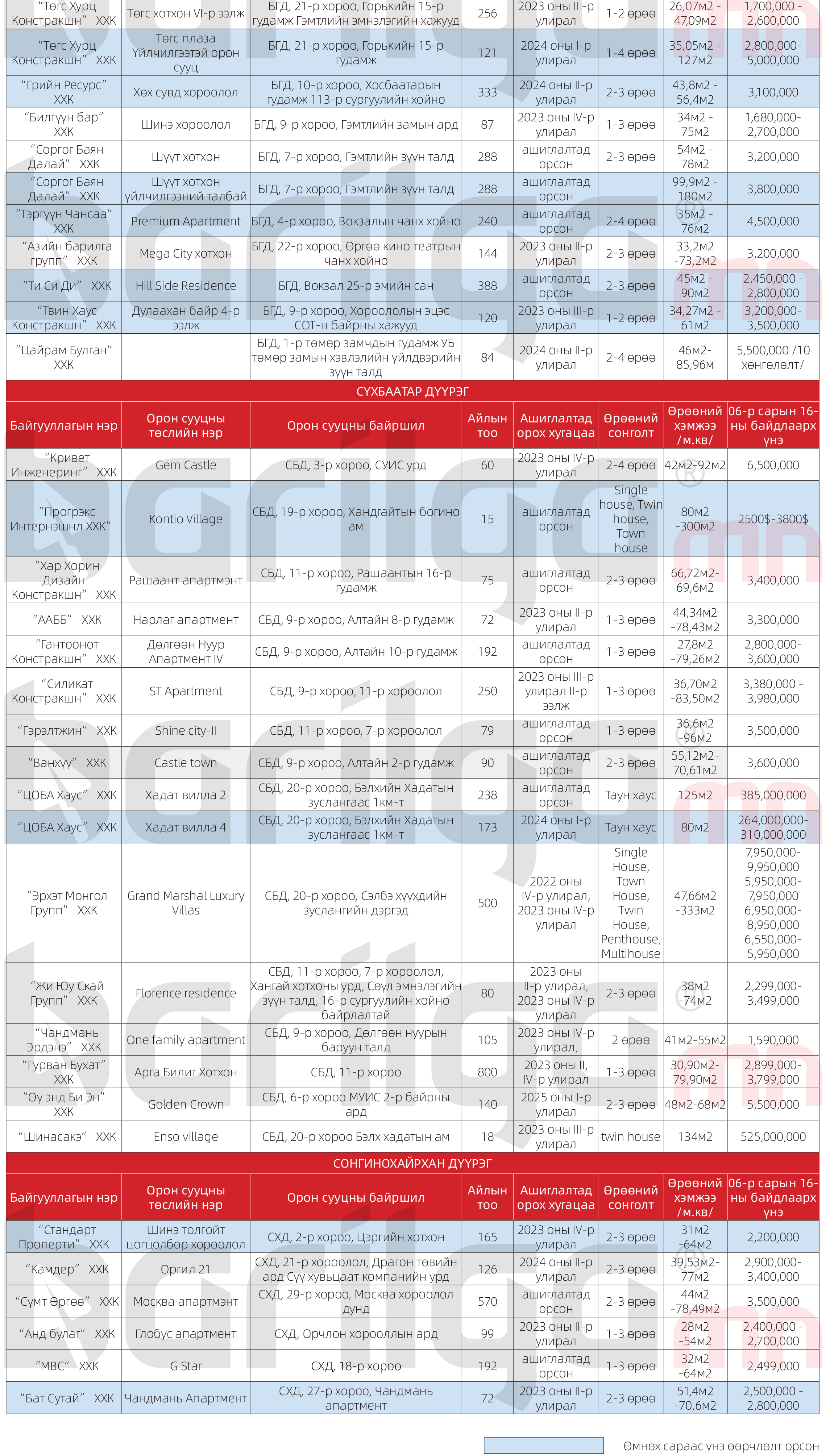 Та эдгээр орон сууцнуудын дэлгэрэнгүй мэдээллийг Barilga.mn сайтын “Шинэ орон сууц” цэсээс үзэх боломжтой ЭНД ДАРНА УУ