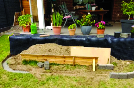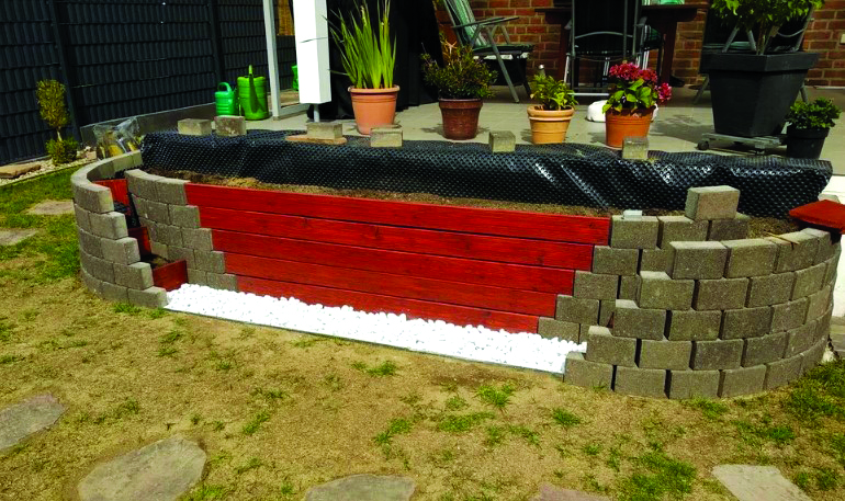 Цэцгийн мандлын урд 2 талд дугуйрсан хүрээг байгуулна. Хүрээ хийх суурь бетон нь 15 см өргөн, 15 см гүнтэй байна. Үүнийг 48 цаг хатаана. Суурь бетон хагарахаас сэргийлж бага багаар ус цацаж хатаана.