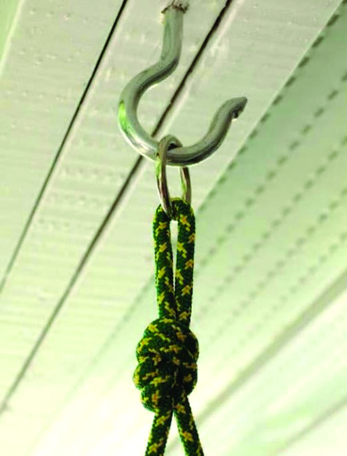 Тааз савлуур хоёрыг холбохдоо хүрээний ижил хэмжээтэй зайд 4 ширхэг нүх гаргана. Мөн олсыг хүрээнд сайтар бэхлээд дараа нь 4 ширхэг олсны нөгөө үзүүрүүдийг нэгтгэн цагирганд бэхэлнэ. Таазандаа дэгээ өлгүүр бэхэлж тогтоогоод савлуурын цагиргаа өлгөнө. Ингээд таны дугуй хэлбэрт дүүжин савлуур бэлэн боллоо.