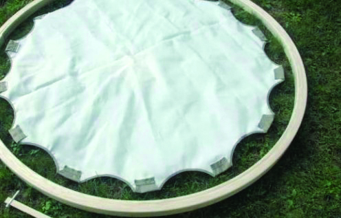 Хүрээ даавуу хоёрыг холбохын тулд бэлдсэн нүхээр зориулалтын олс оруулан хооронд нь бэхэлнэ.