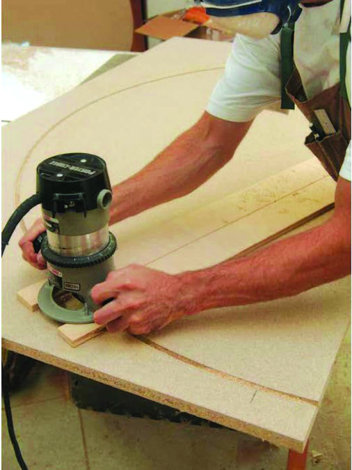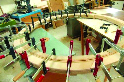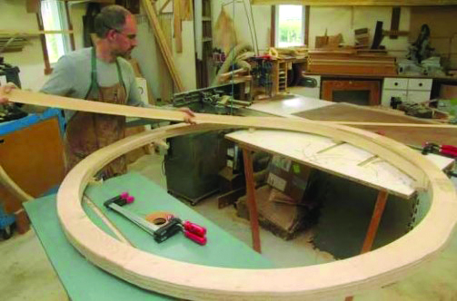 Хавтан модоор хүрээг бэлдэнэ. Хавтан модны голыг тодорхойлон тэмдэглэж чиг мод тавин хагас тойрог хэлбэрээр харандаагаар тэмдэглэнэ. Тэмдэглэсэн хэсгийг хөрөөдөж авна. Энэ маягаар 6 ширхэг 10 см өргөнтэй хагас дугуй ижил хавтан бэлдэнэ.