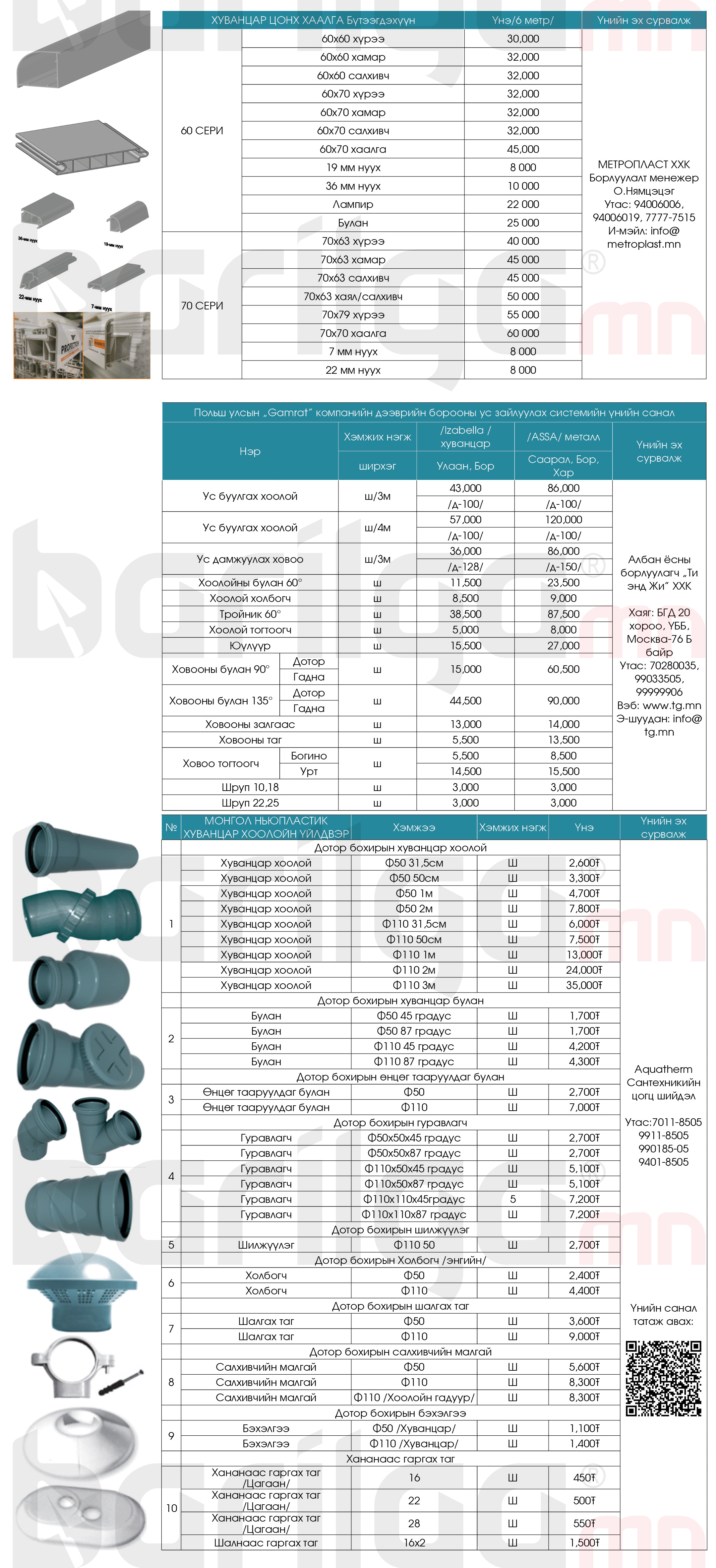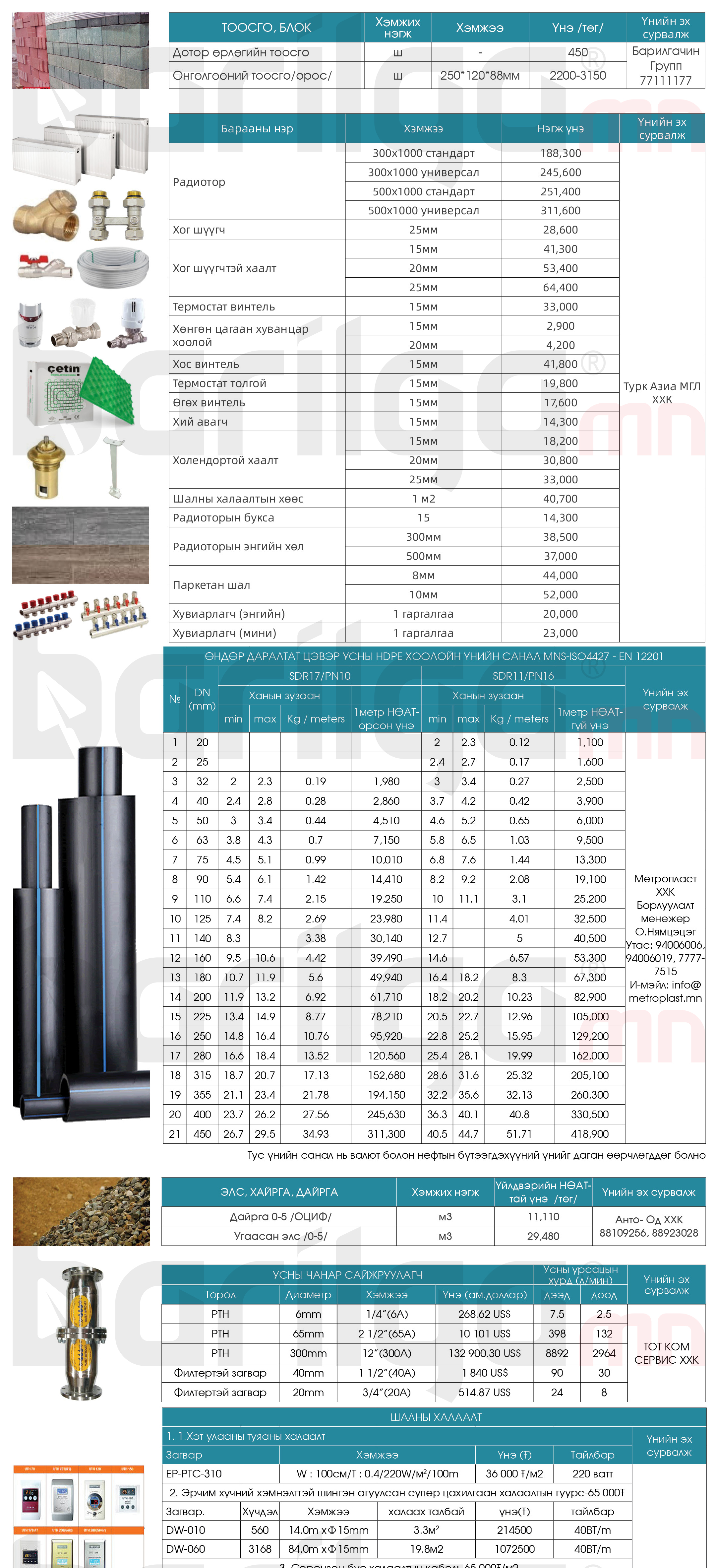 / Материалын үнэд НӨАТ орсон, тээврийн зардал ороогүй болно /